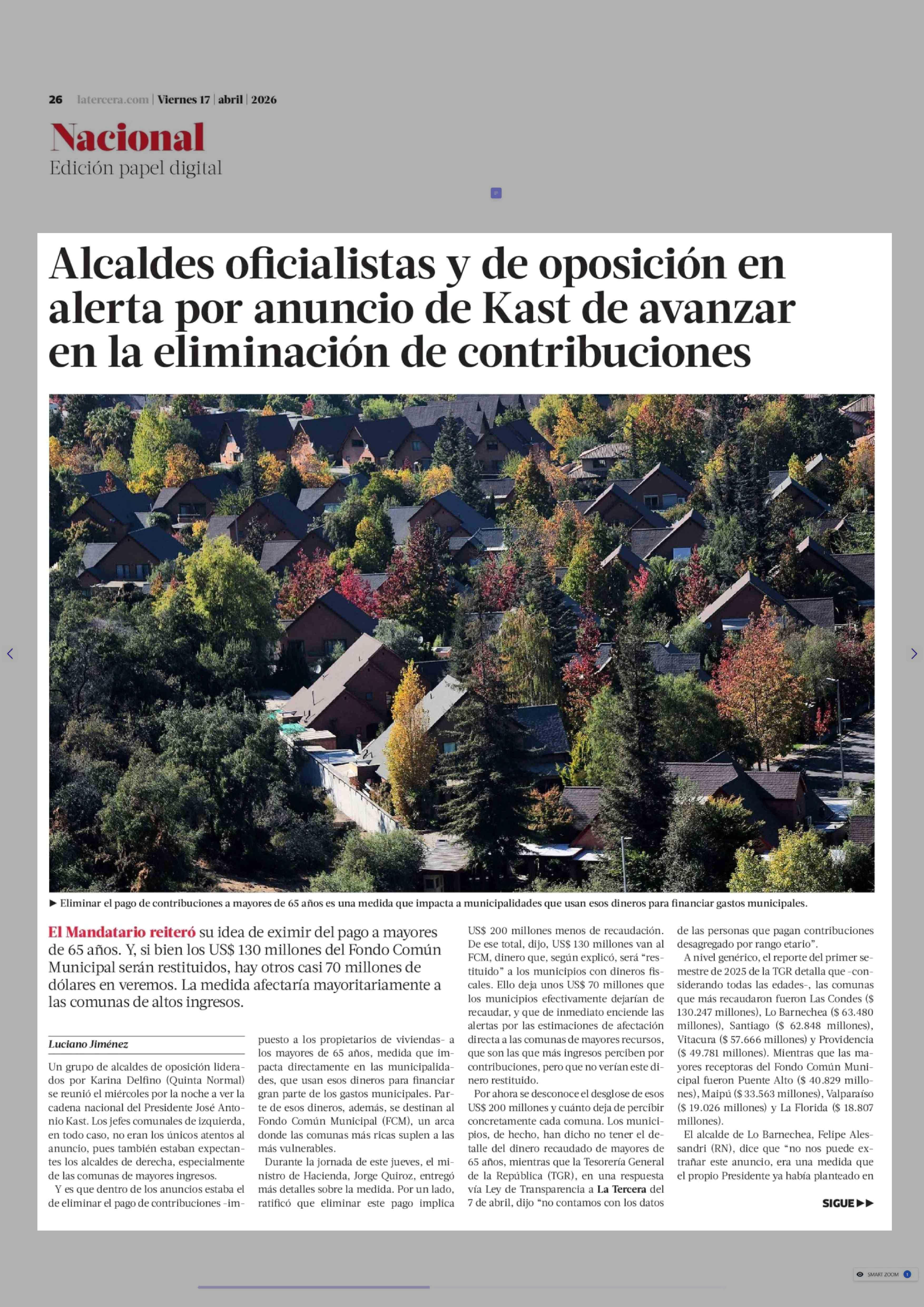 Título: Alcaldes oficialistas y de oposición en alerta por anuncio de Kast de avanzar en la eliminación de contribuciones