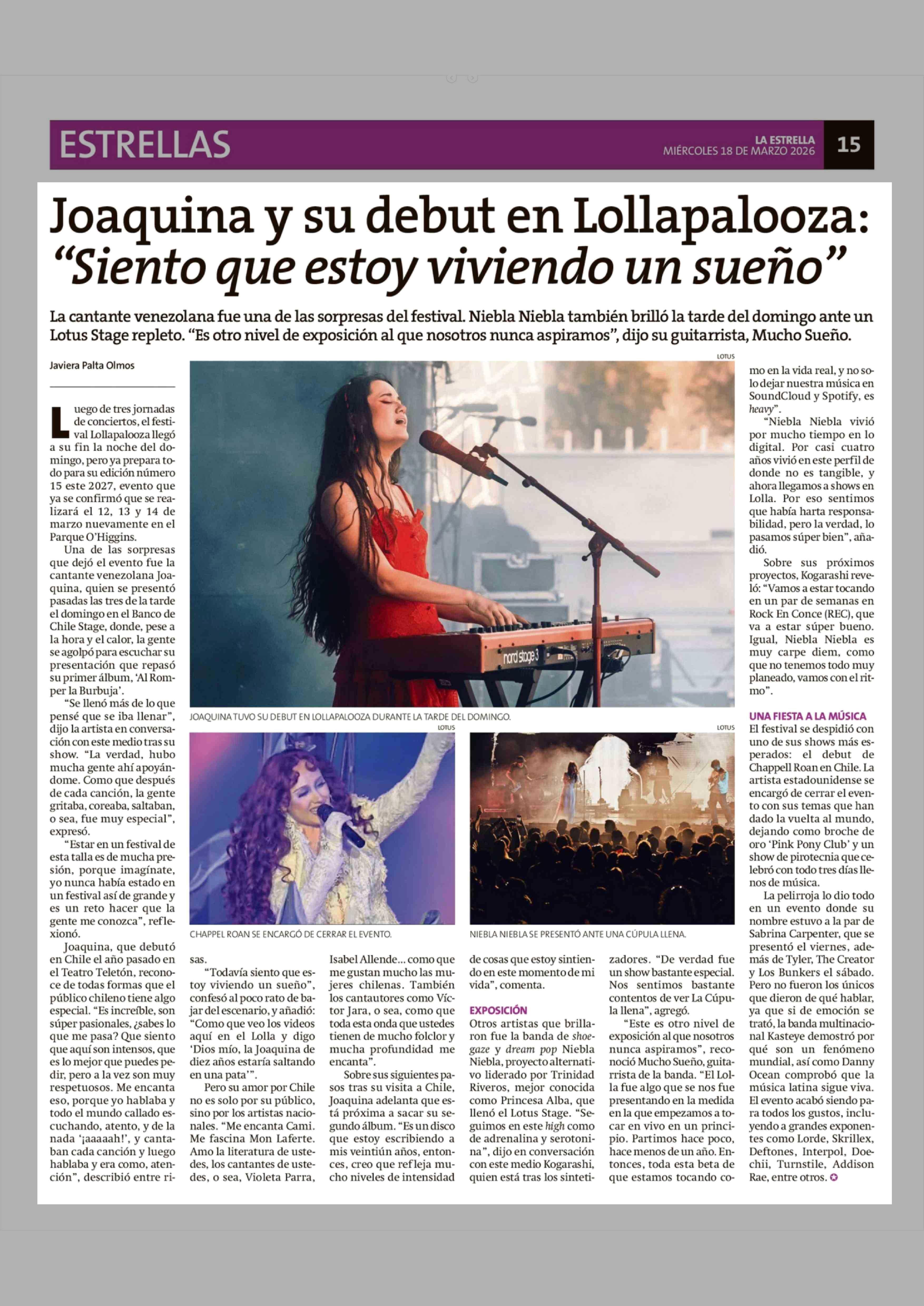 Título: Joaquina y su debut en Lollapalooza: "Siento que estoy viviendo un sueño"