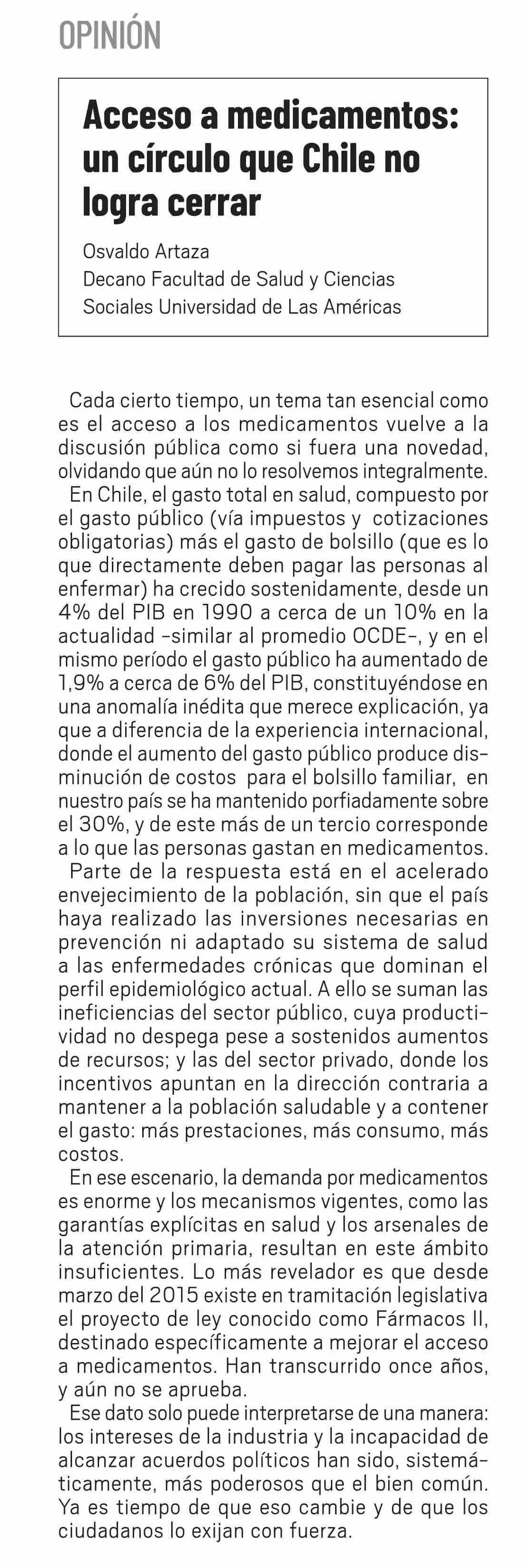 | Título: | COLUMNAS DE OPINIÓN: Acceso a medicamentos: un círculo que Chile no logra cerrar |