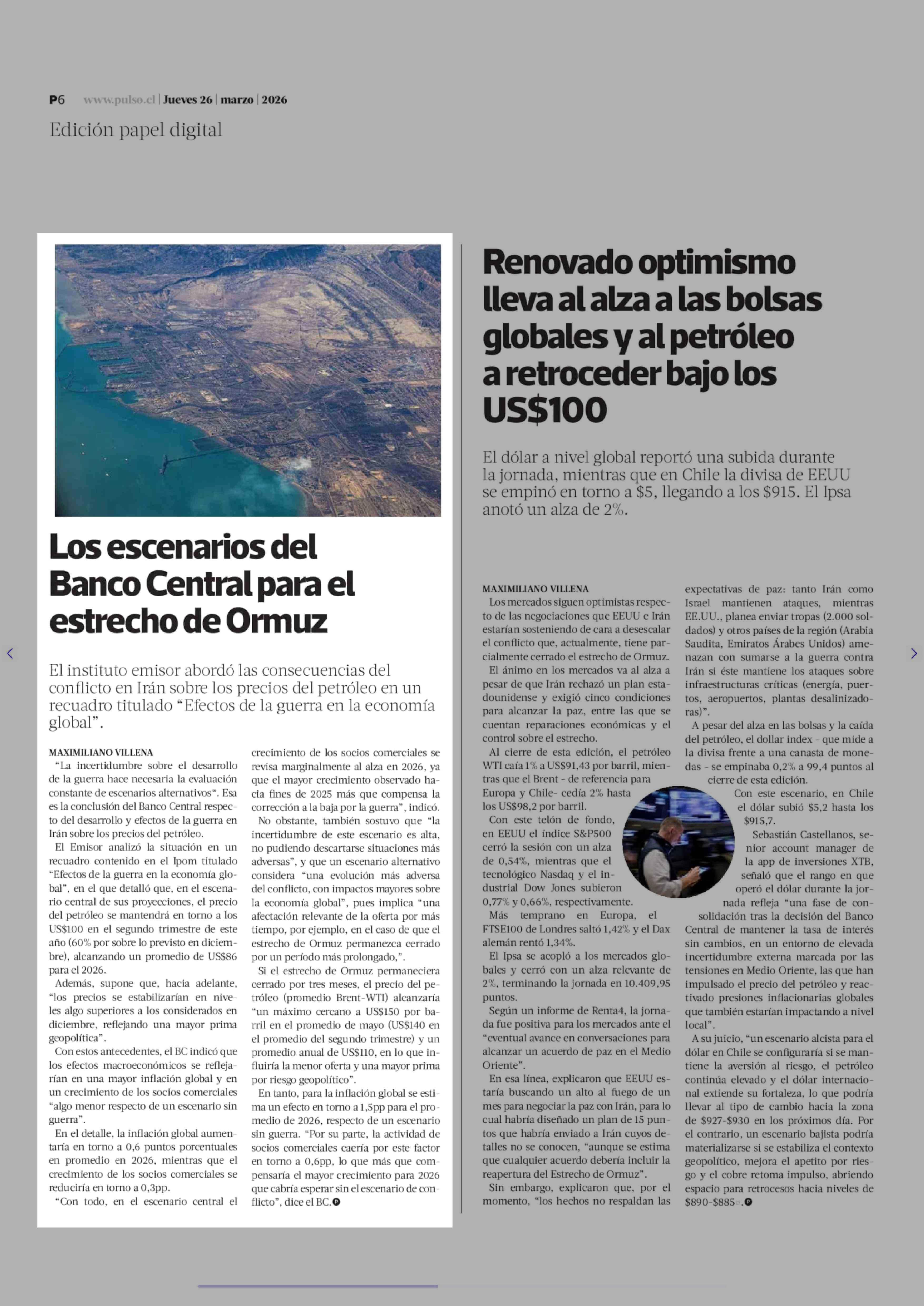 Los escenarios del Banco Central para el estrecho de Ormuz 26-03-2026 La Tercera |