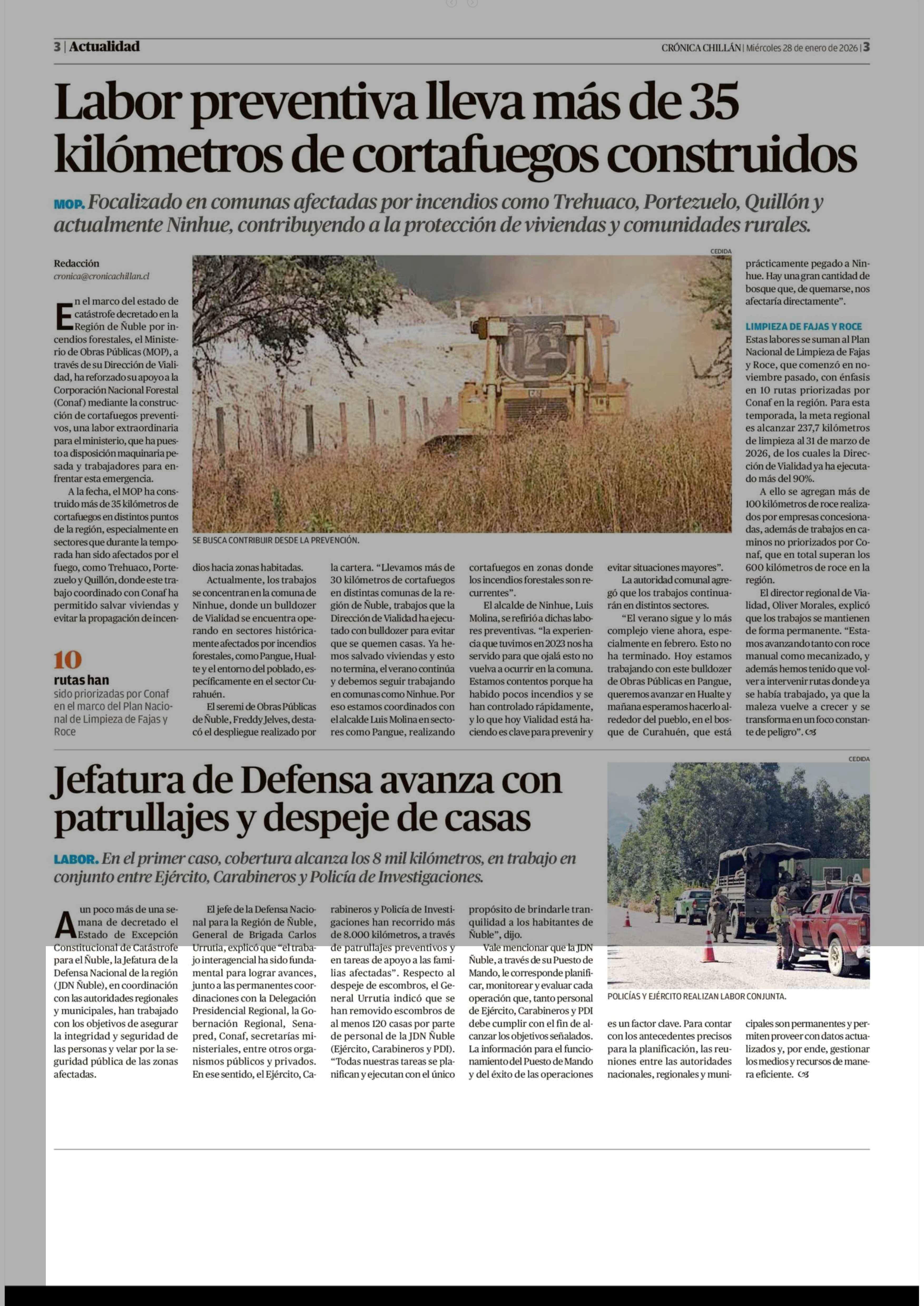 Fecha: 28-01-2026 Sector: Noticia general Región: Región del Ñuble