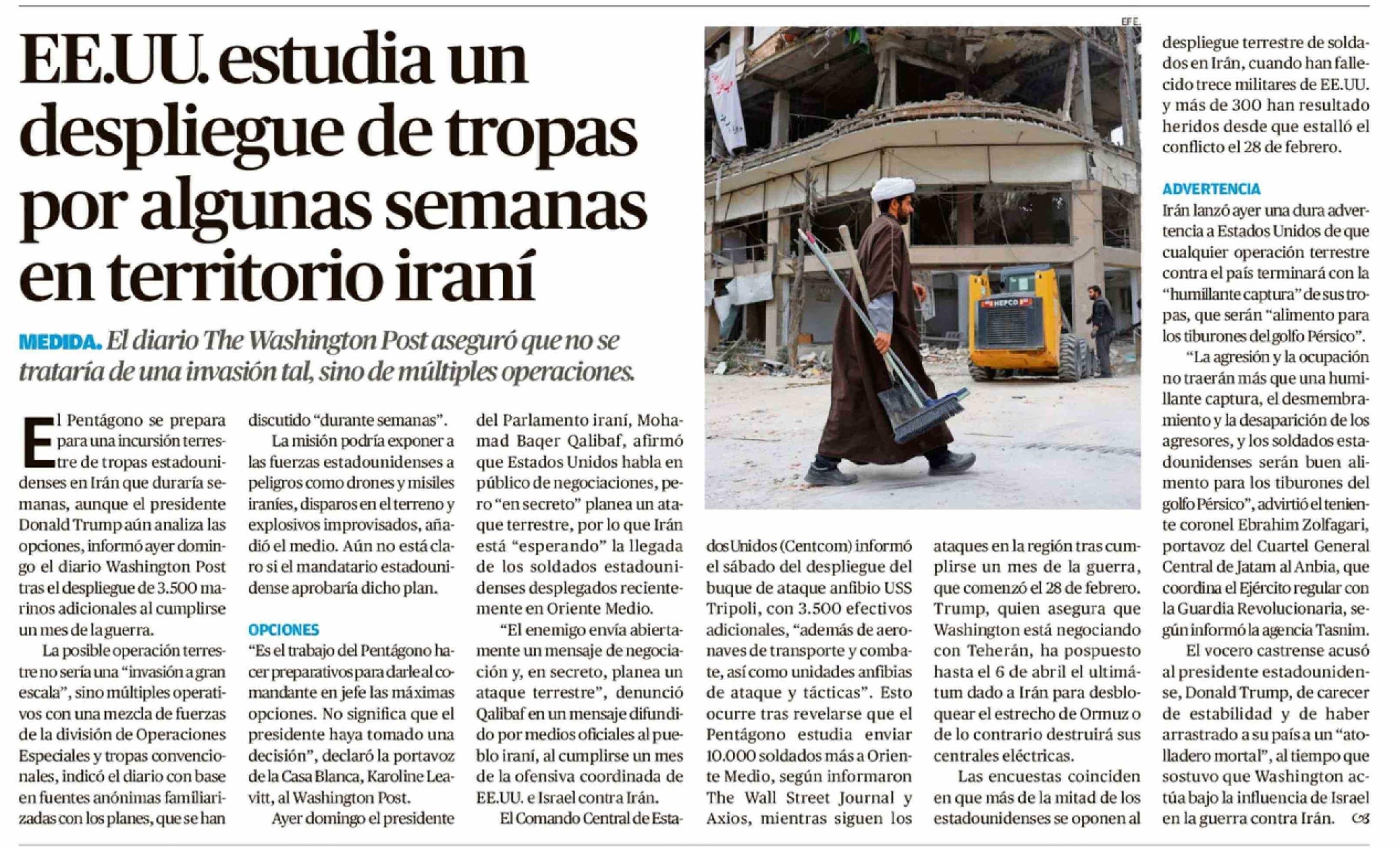Título: EE.UU. estudia un despliegue de tropas por algunas semanas en territorio iraní