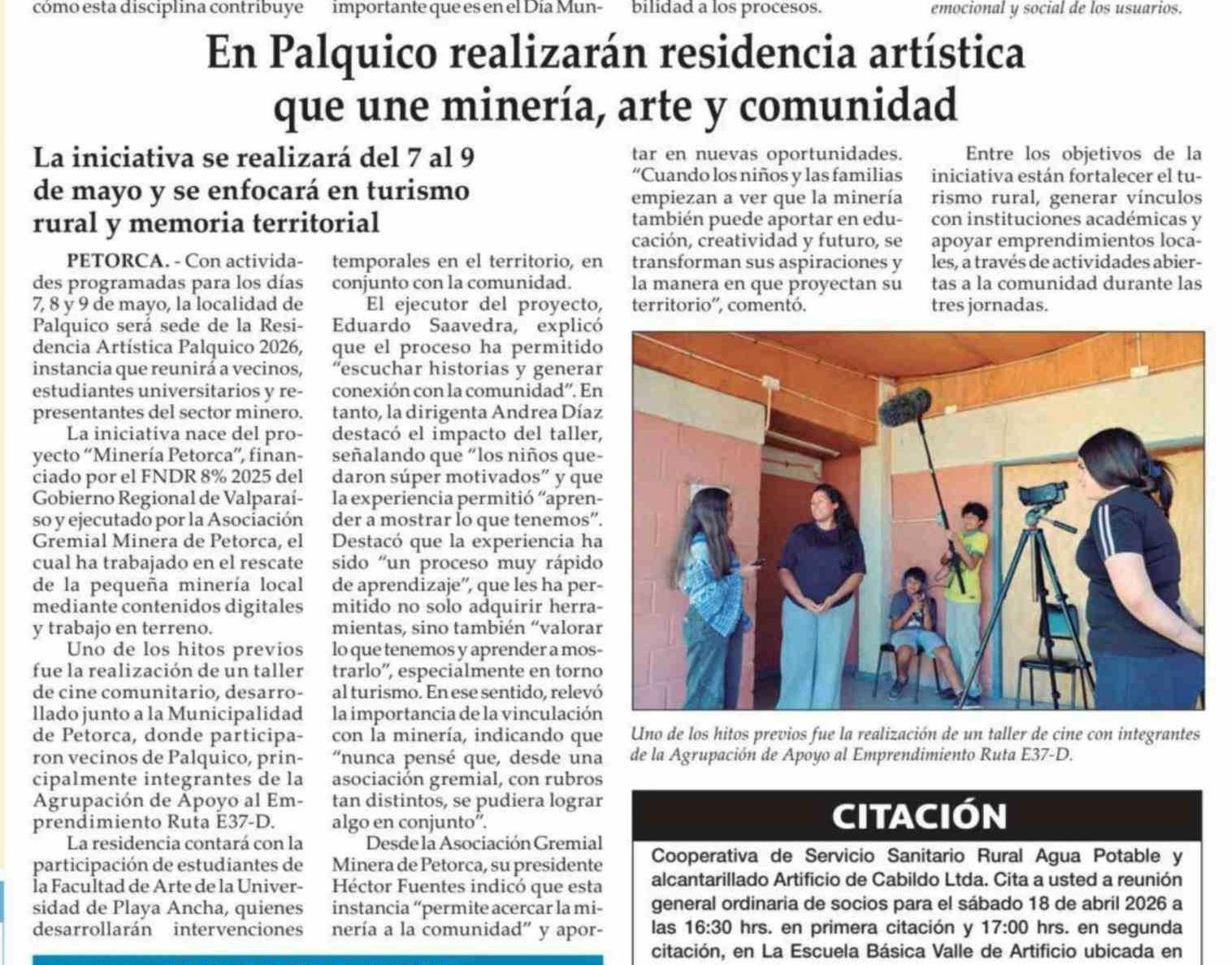 Título: En Palquico realizarán residencia artística que une minería, arte y comunidad
