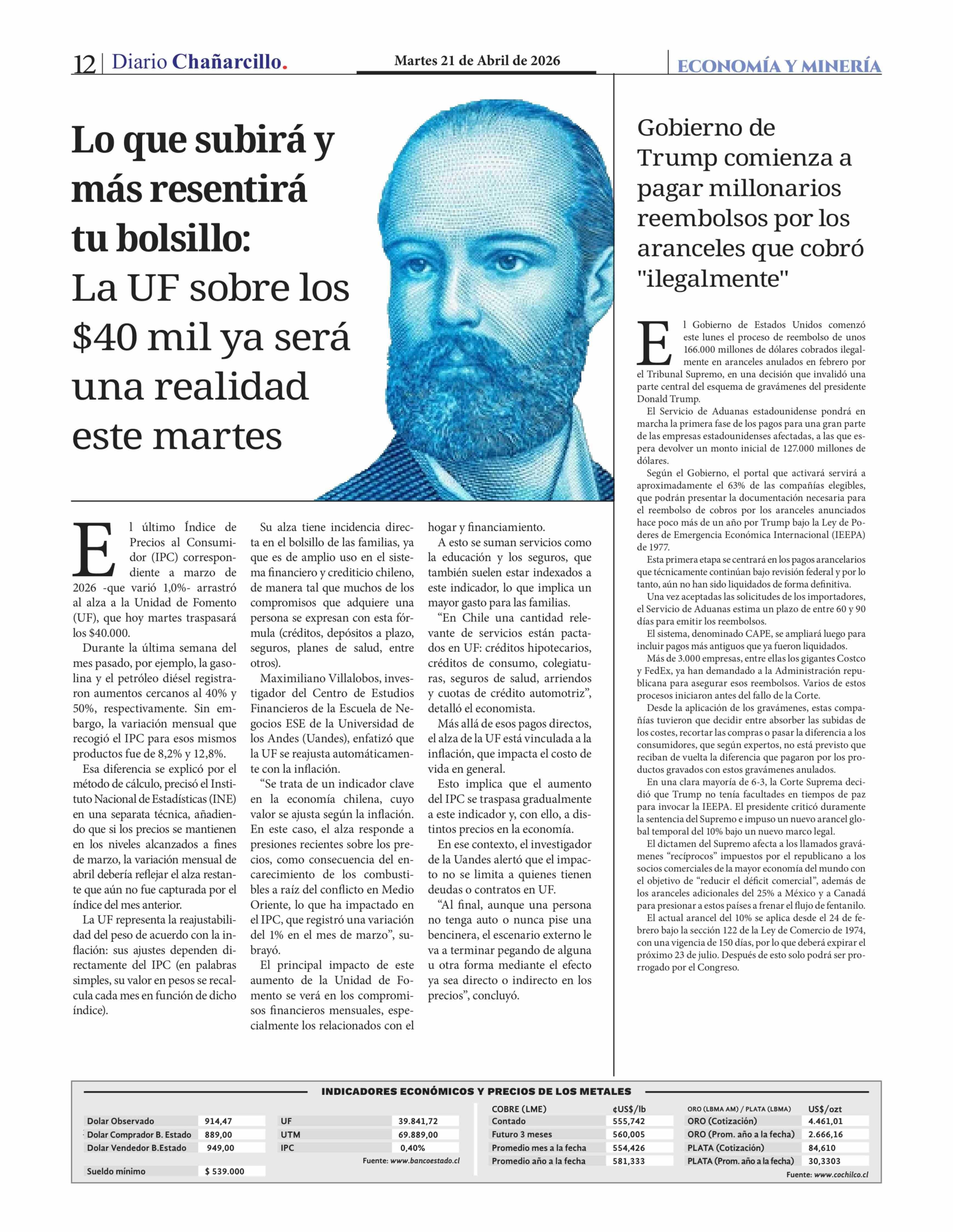 Fuente: Diario Chañarcillo (Diario Chanarcillo) Página(s): 12