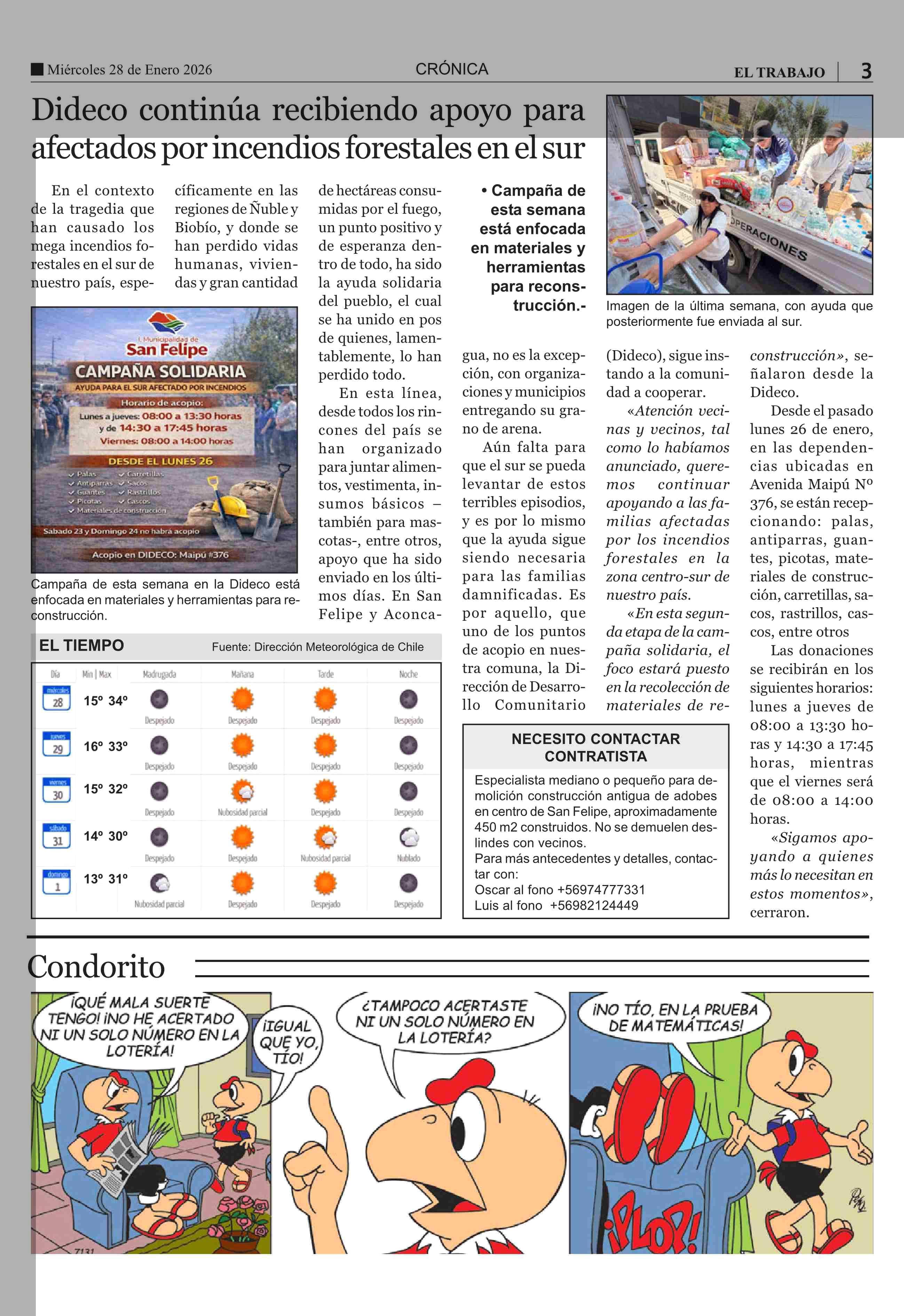 Dideco continúa recibiendo apoyo para afectados por incendios forestales en el sur 28-01-2026 El Trabajo |