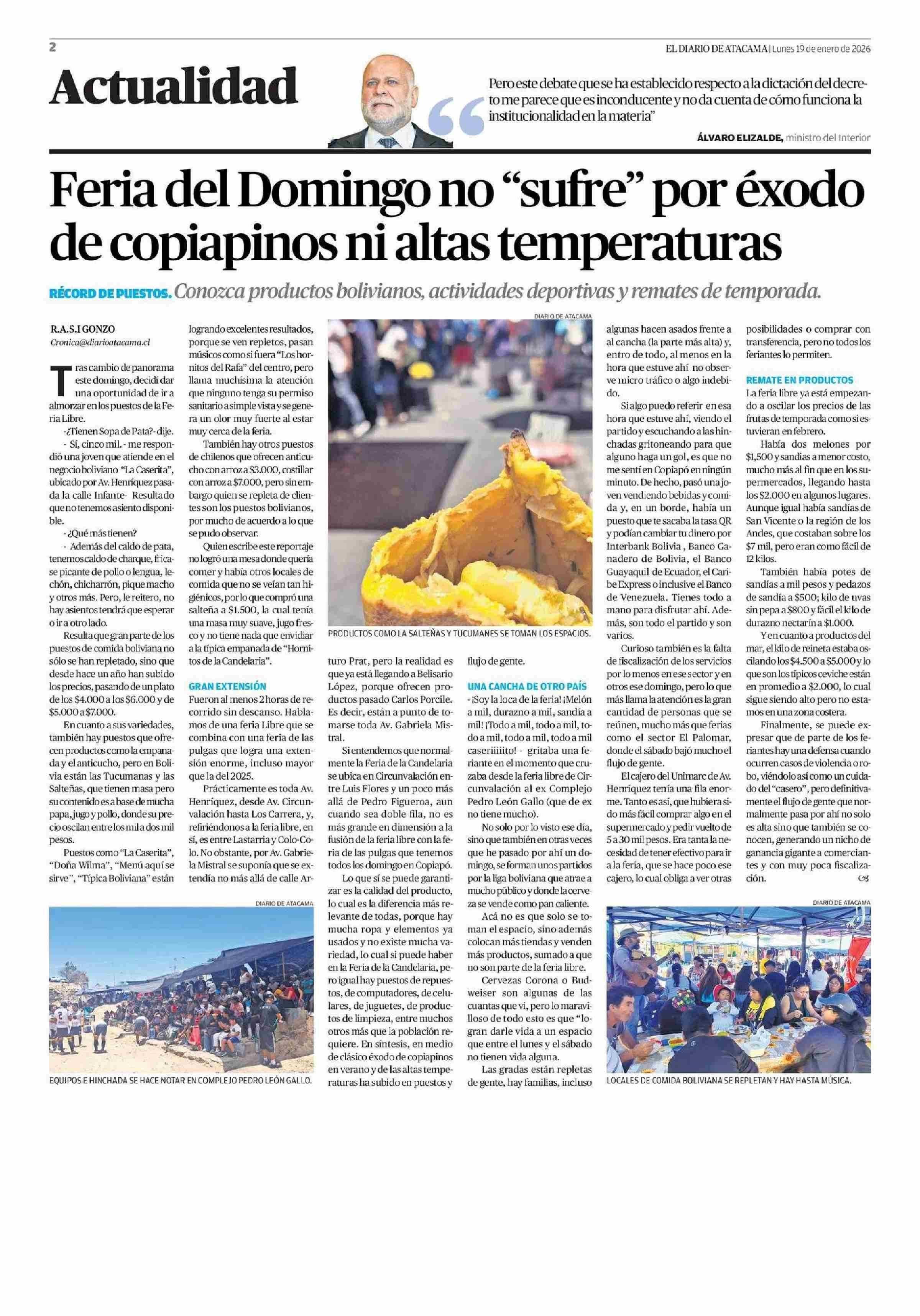 Feria del Domingo no "sufre" por éxodo de copiapinos ni altas temperaturas 19-01-2026 El Diario de Atacama |