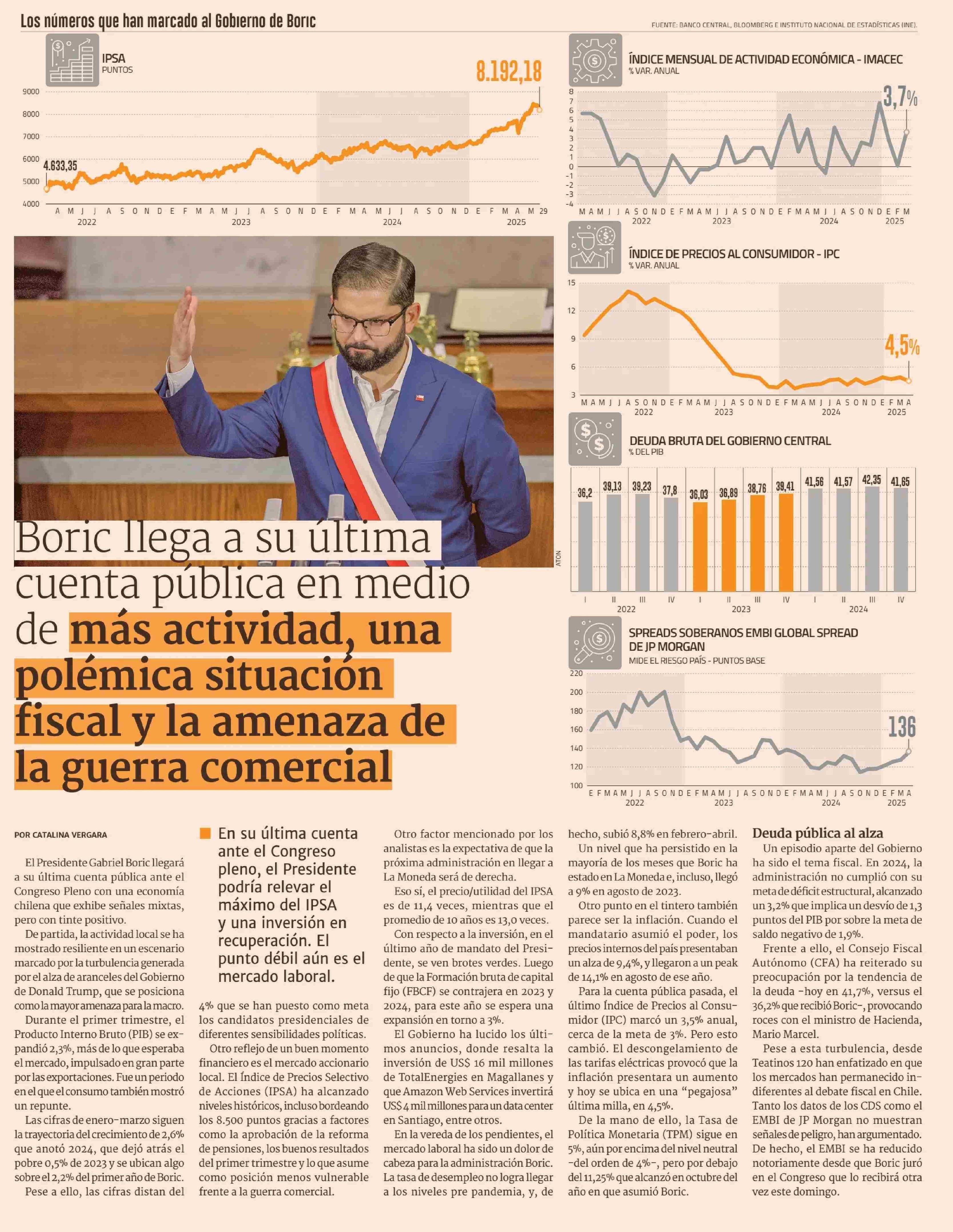 Título: Boric llega a su última cuenta publica en medio de más actividad, una polémica situación fiscal y la amenaza de la guerra comercial