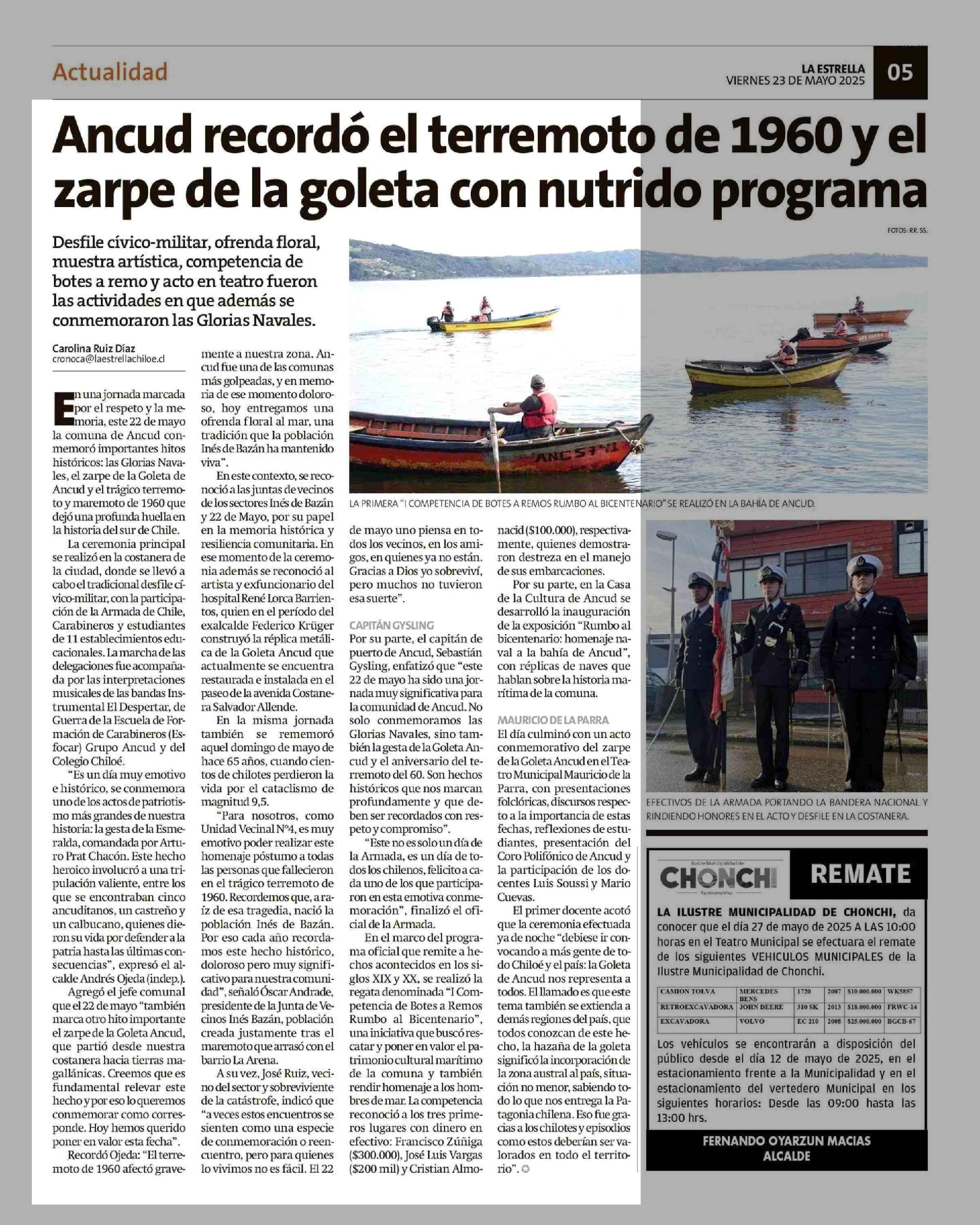 Ancud recordó el terremoto de 1960 y el zarpe de la goleta con nutrido programa 23-05-2025 La Estrella de Chiloé |
