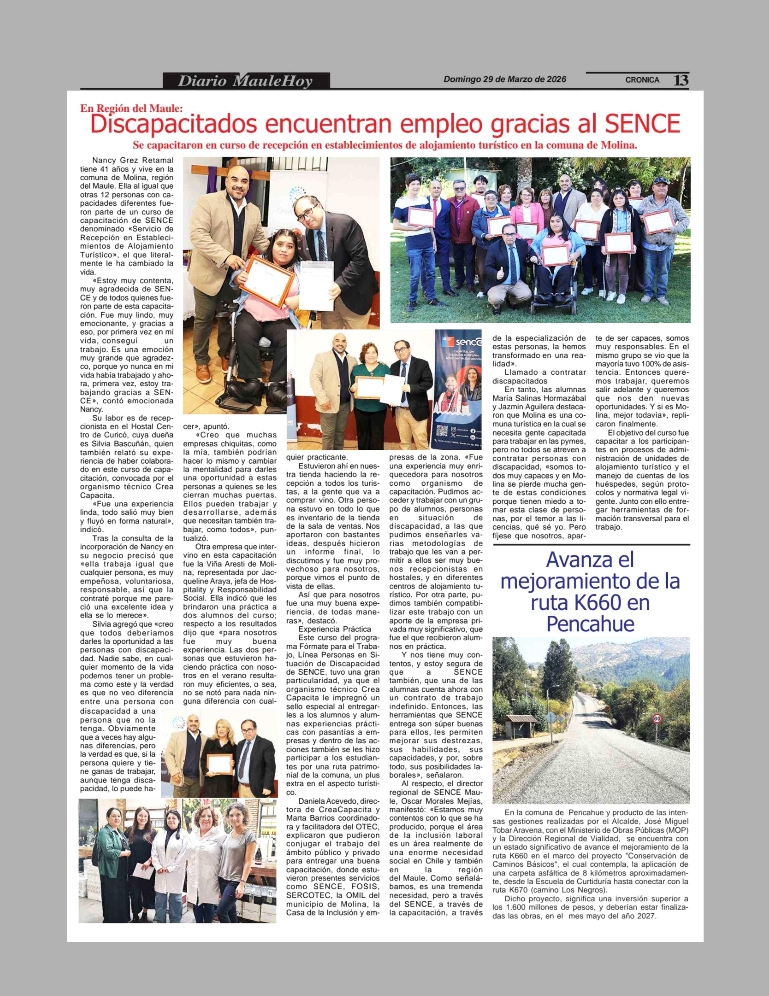 Discapacitados encuentran empleo gracias al SENCE 29-03-2026 Maule Hoy |