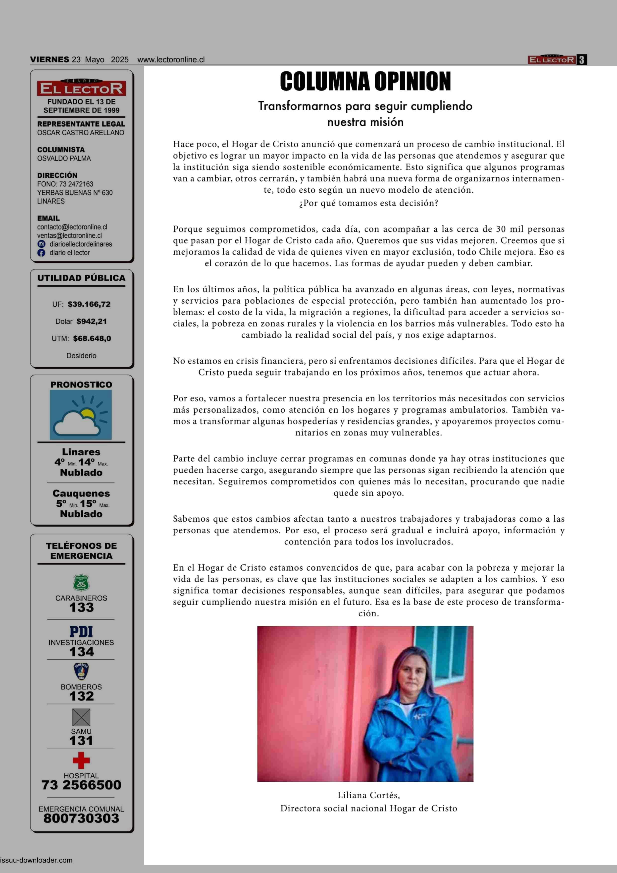 COLUMNAS DE OPINIÓN: Transformarnos para seguir cumpliendo nuestra misión 23-05-2025 El Lector |