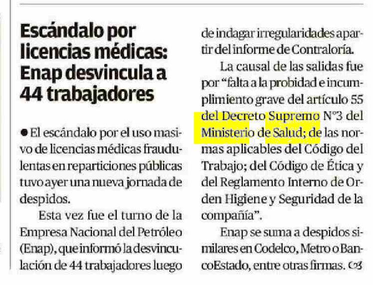 | Título: | Escándalo por licencias médicas: Enap desvincula a 44 trabajadores |