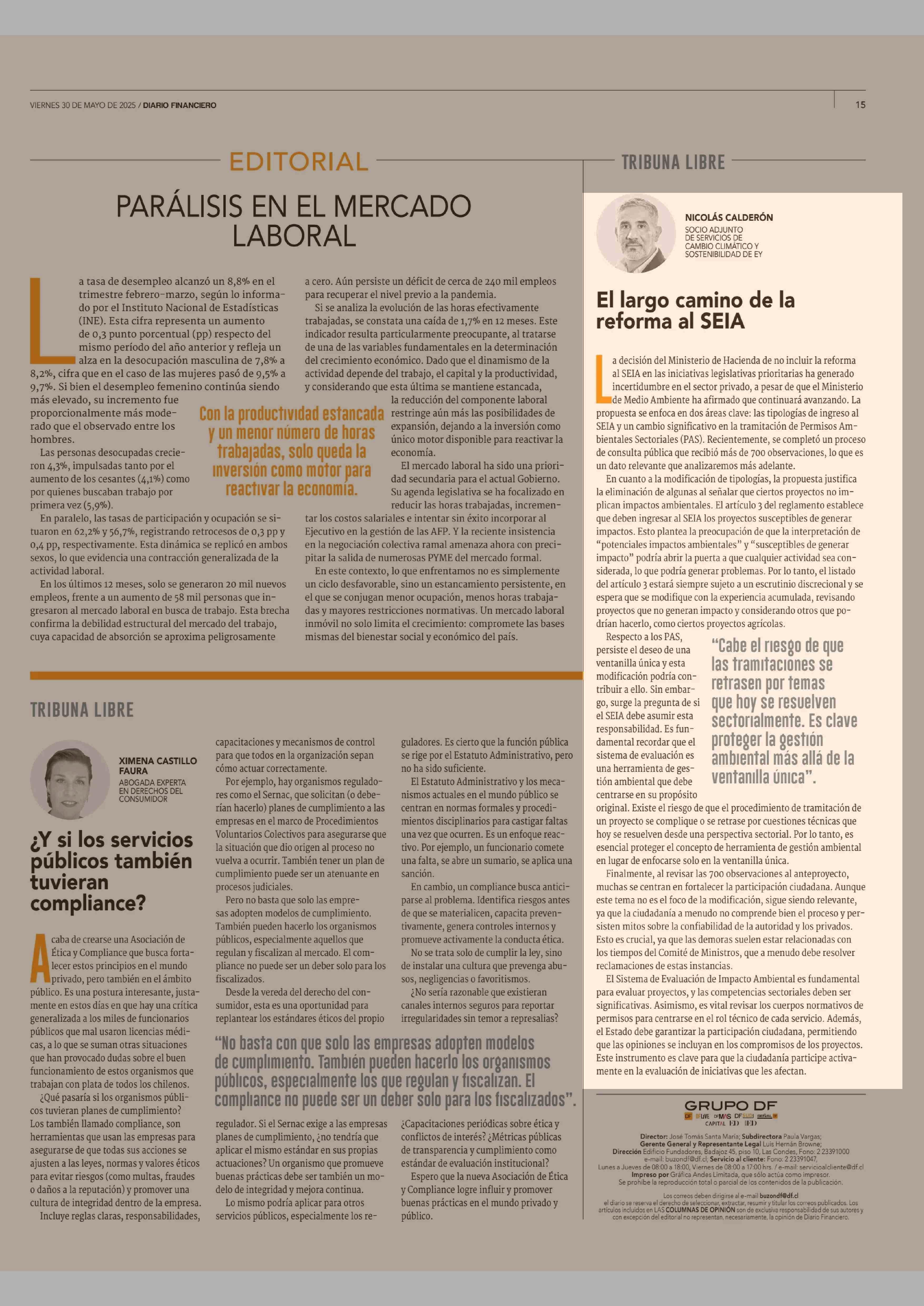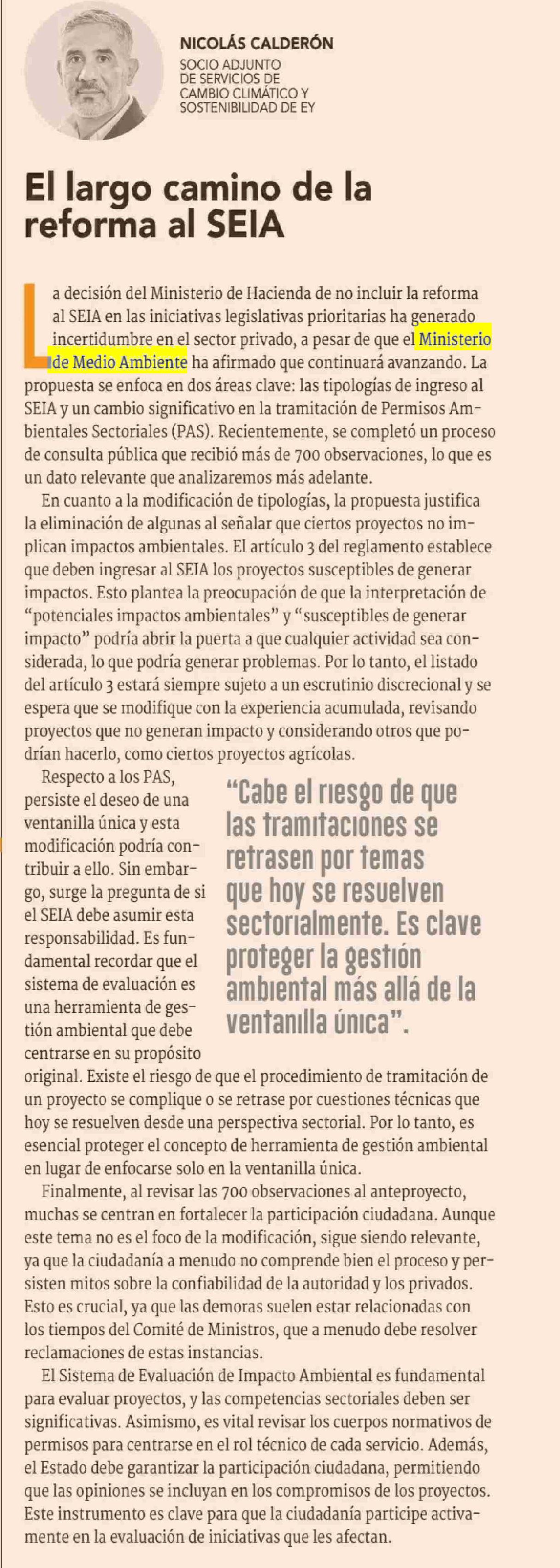 COLUMNAS DE OPINIÓN: El largo camino de la reforma al SEIA 30-05-2025 Diario Financiero |