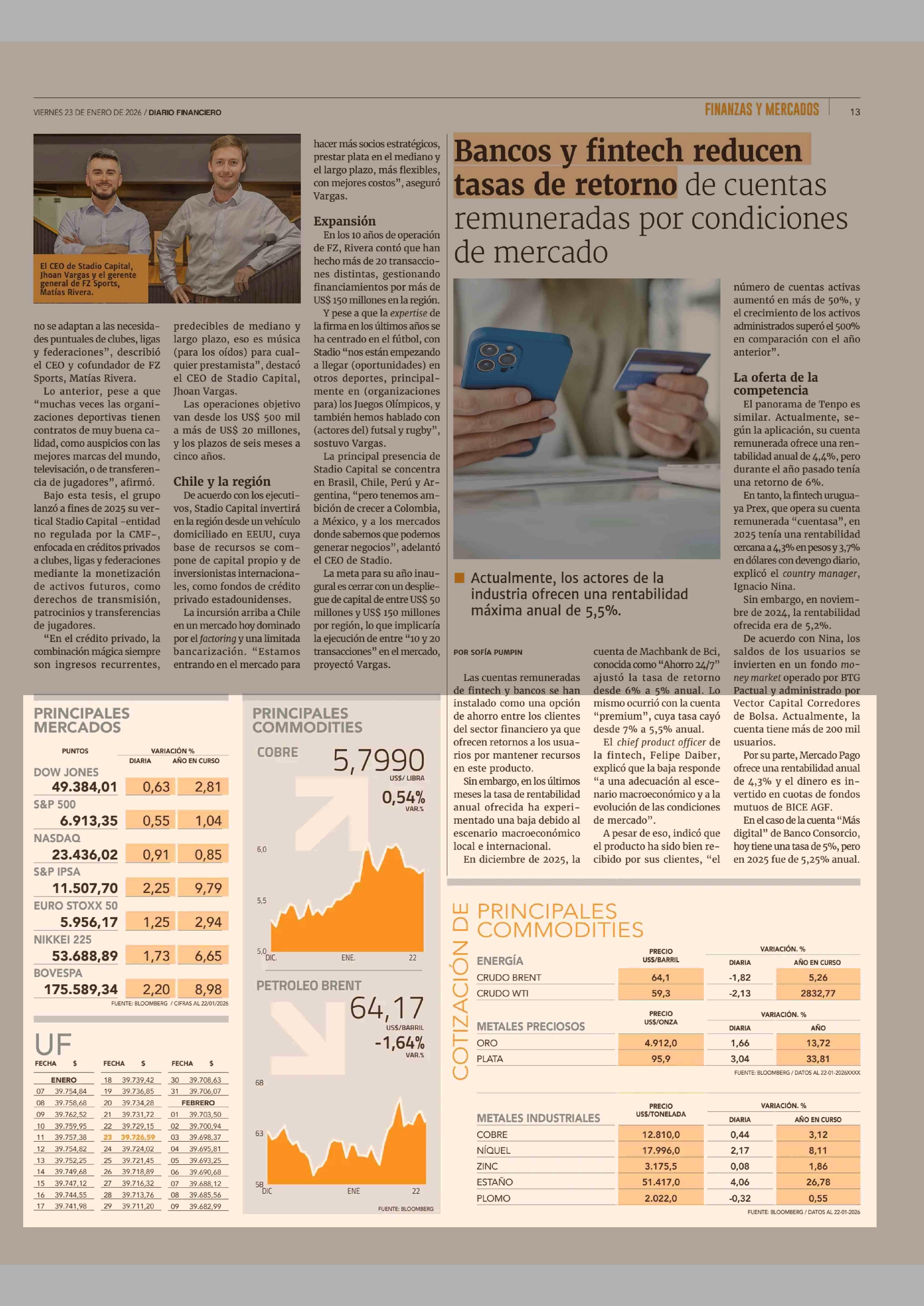 Indicadores Económicos: MERCADOS 23-01-2026 Diario Financiero |
