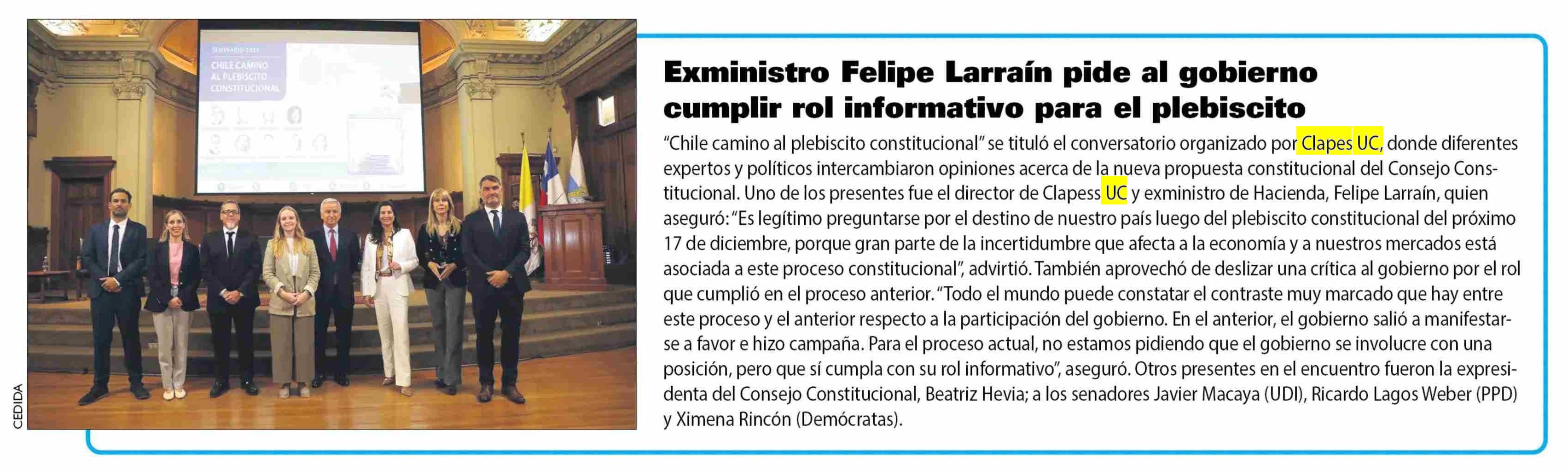 Exministro Felipe Larraín pide al gobierno cumplir rol informativo para el plebiscito 15-11-2023 Las Últimas Noticias |
