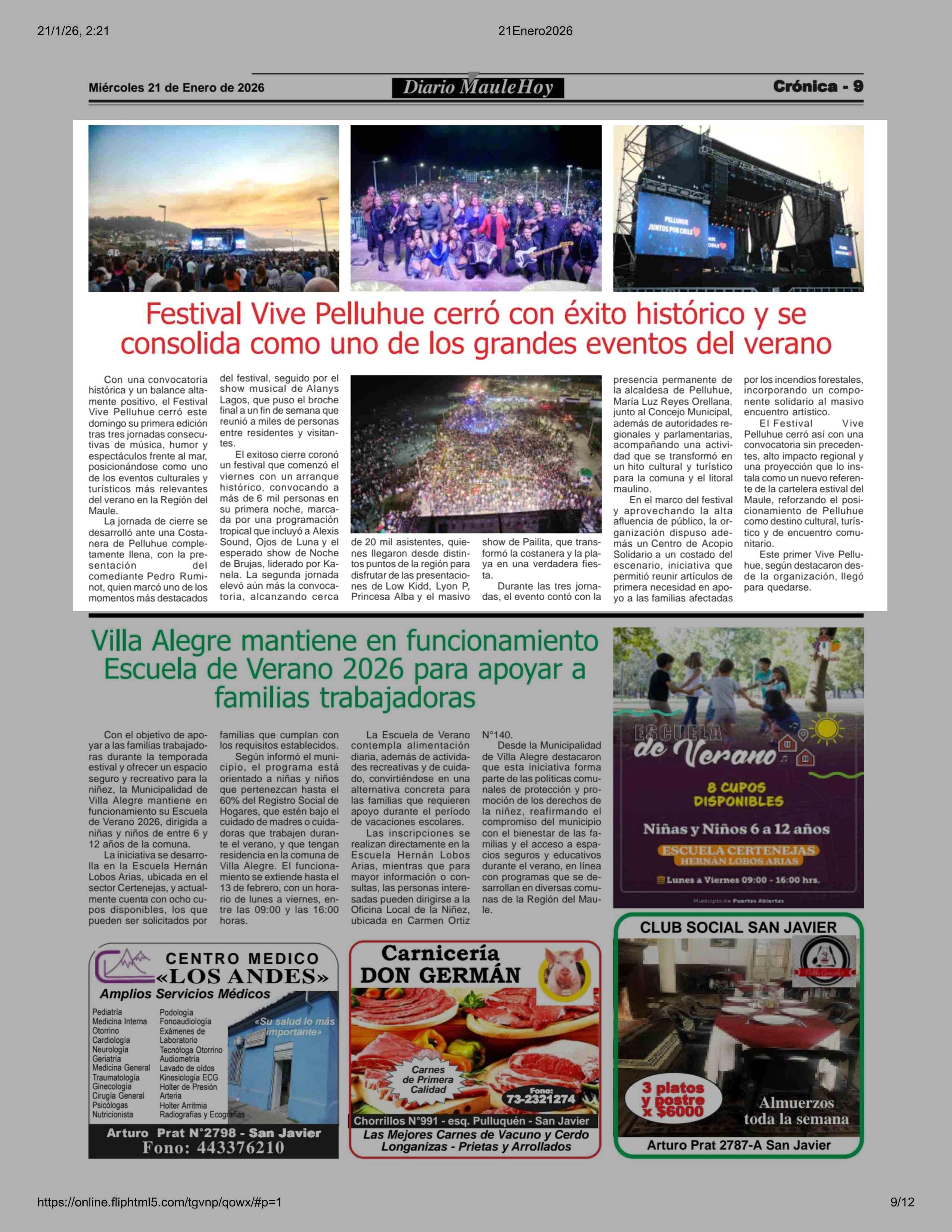 Festival Vive Pelluhue cerró con éxito histórico y se consolida como uno de los grandes eventos del verano 21-01-2026 Maule Hoy |