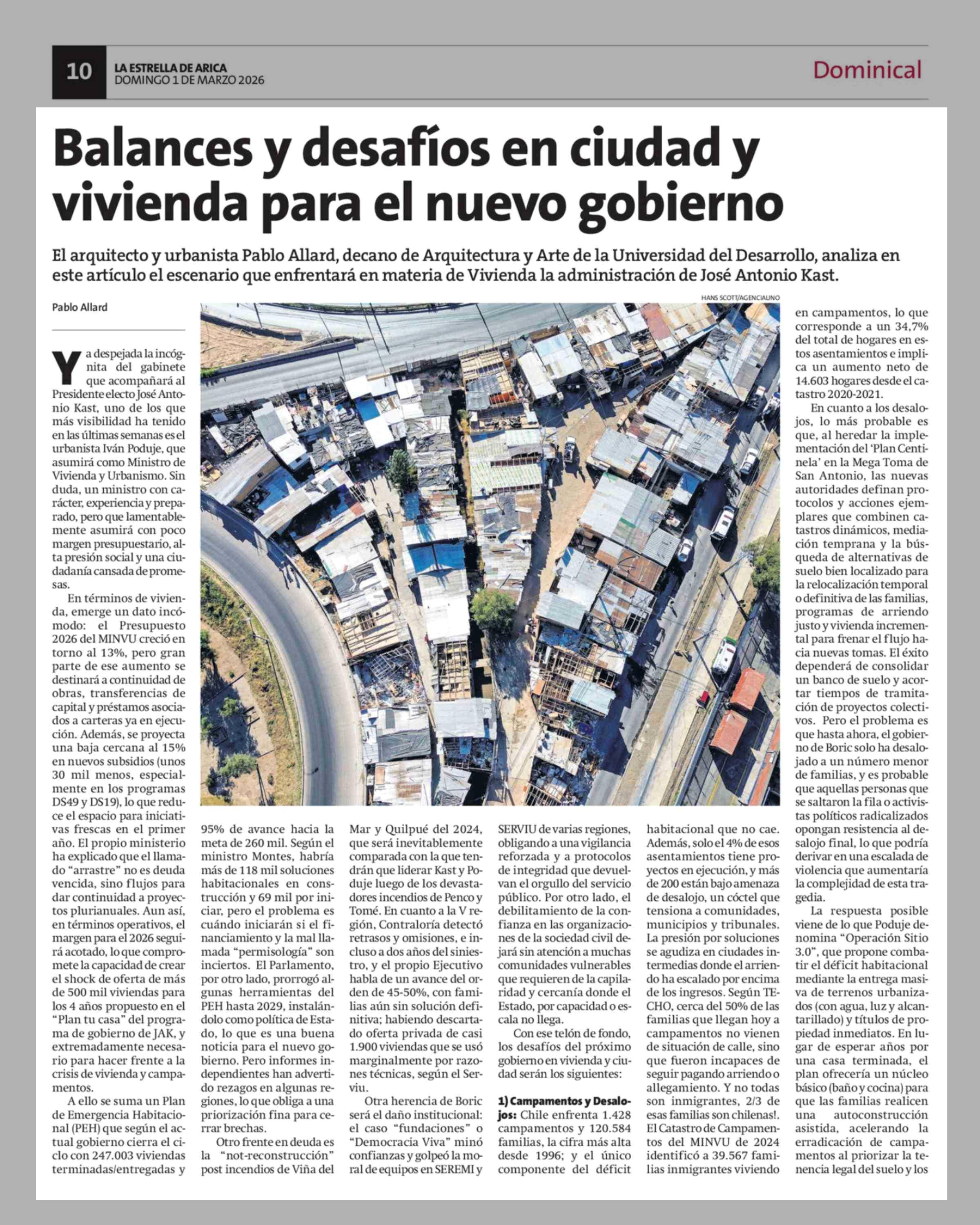 Balances y desafíos en ciudad y vivienda para el nuevo gobierno 01-03-2026 La Estrella de Arica |