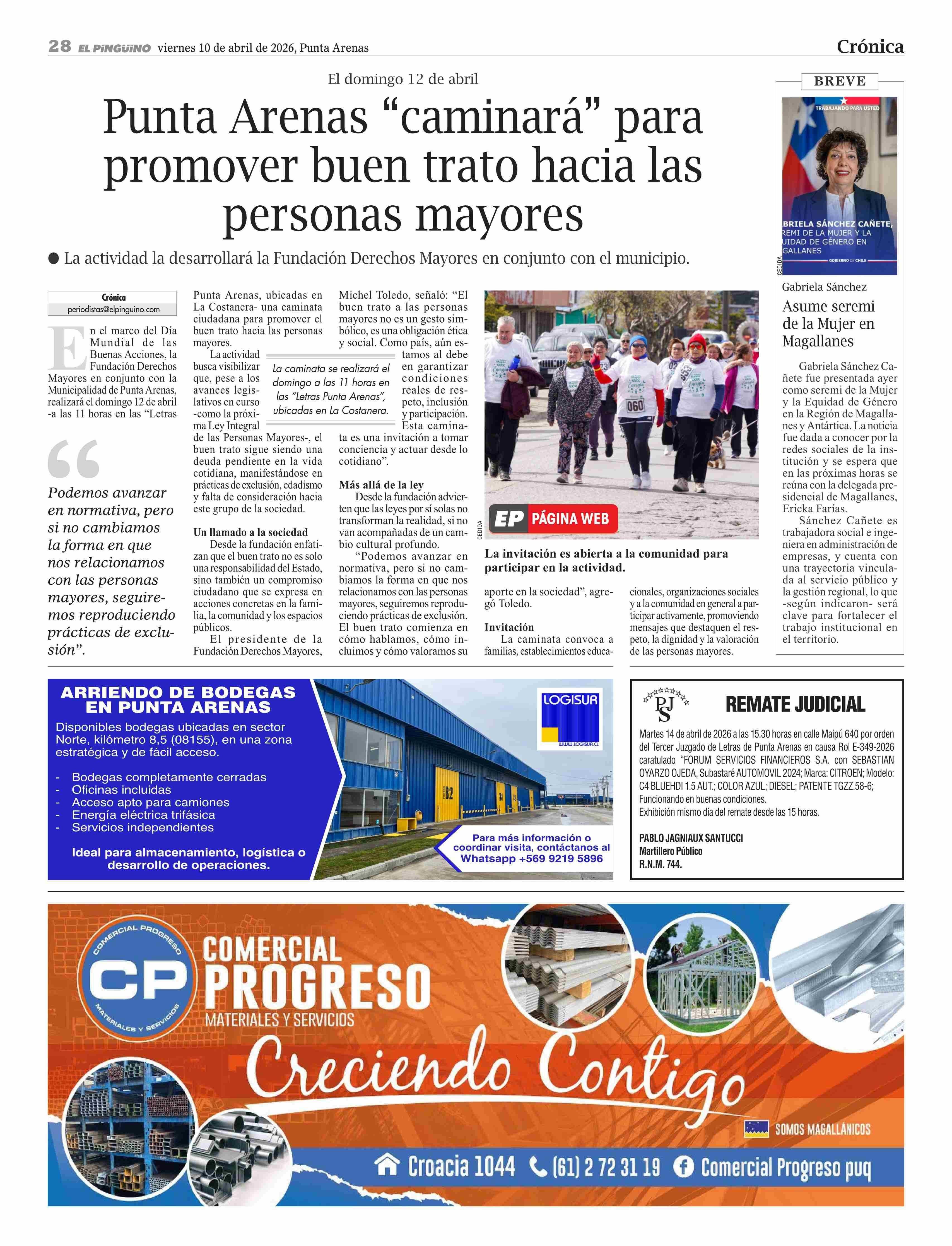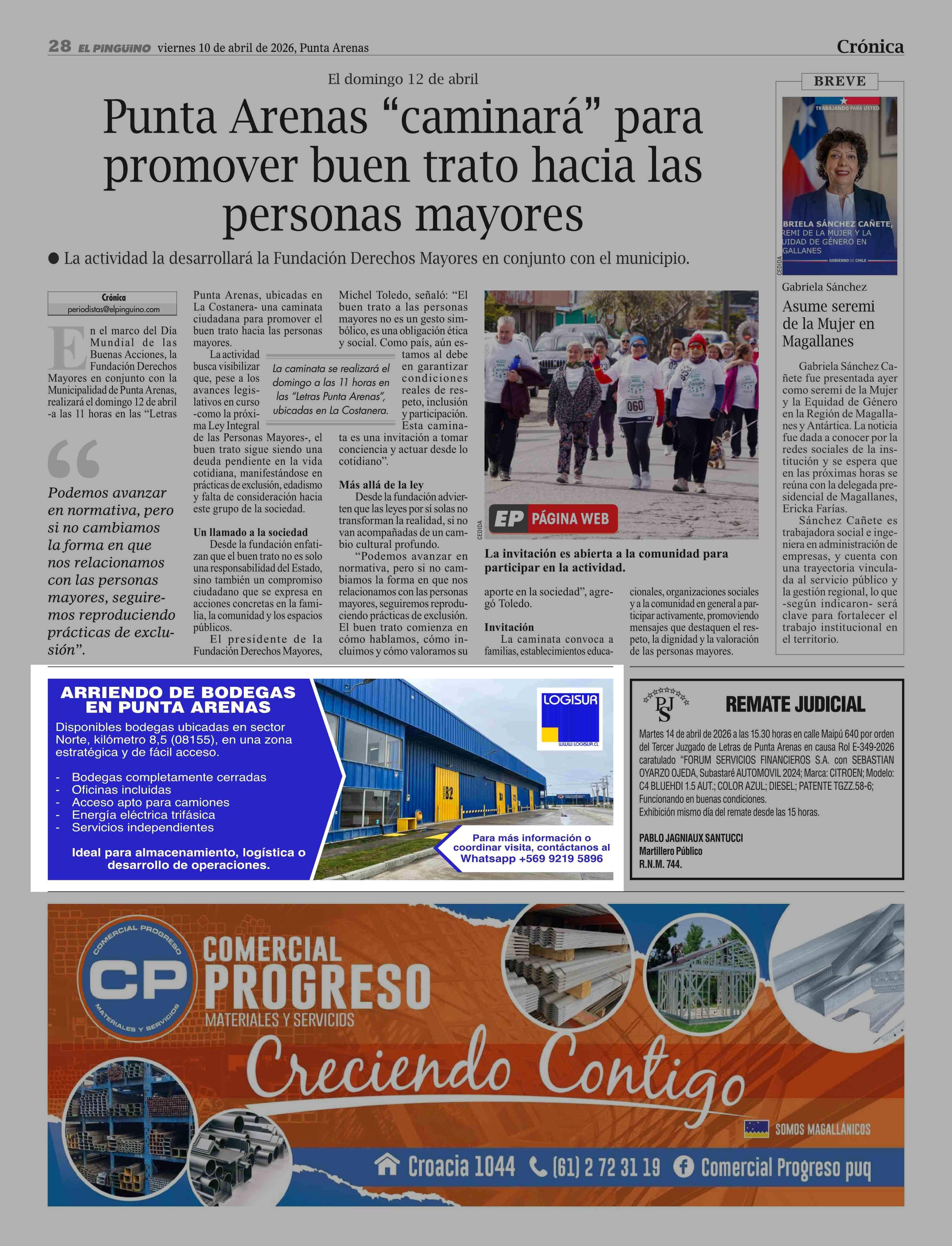 AVISO INMOBILIARIO: ARRIENDO DE BODEGAS EN PUNTA ARENAS 10-04-2026 El Pingüino |