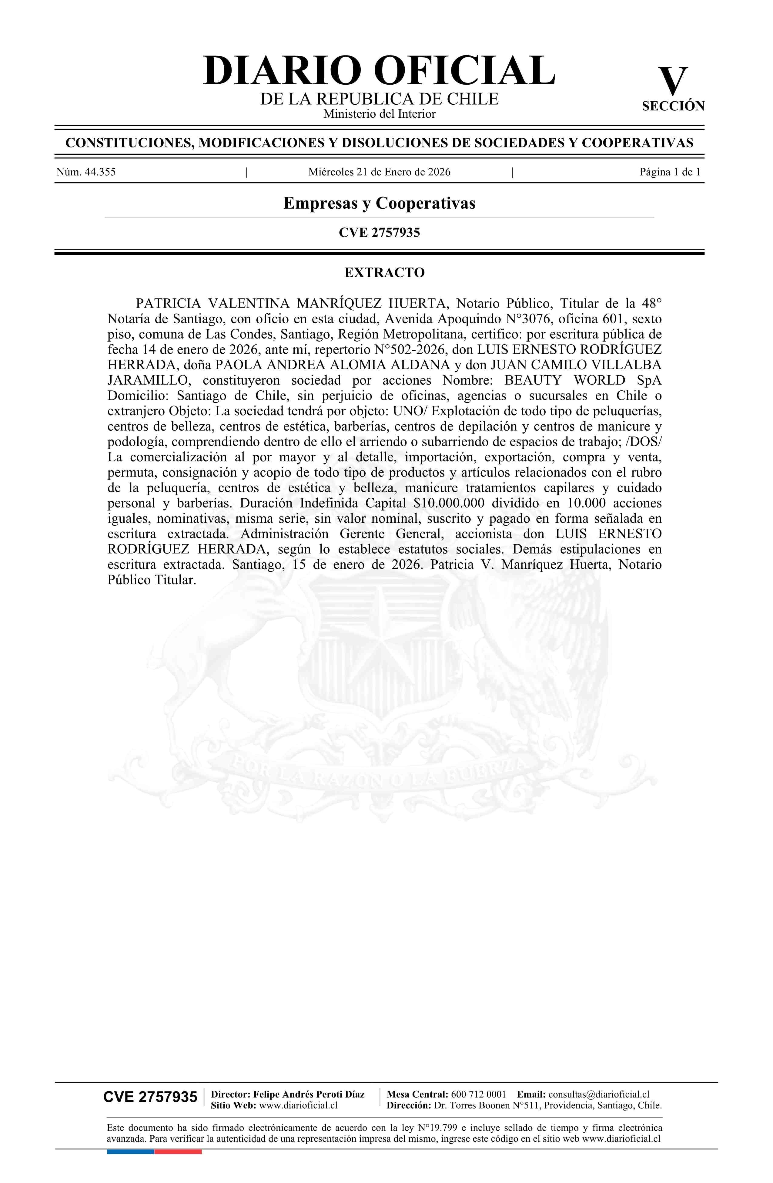 Título: Beauty World SpA