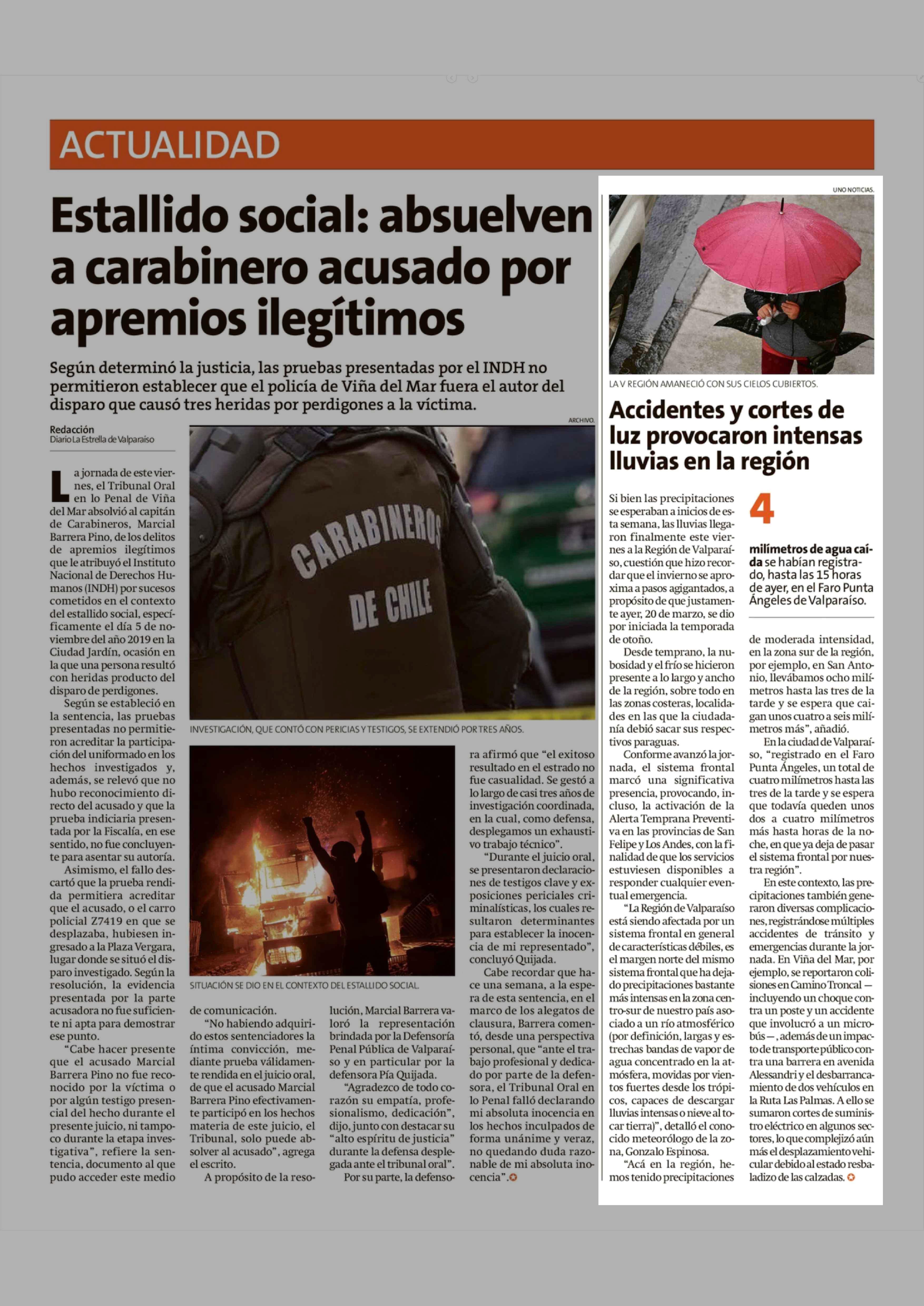 Accidentes y cortes de luz provocaron intensas lluvias en la región 21-03-2026 La Estrella de Valparaíso |