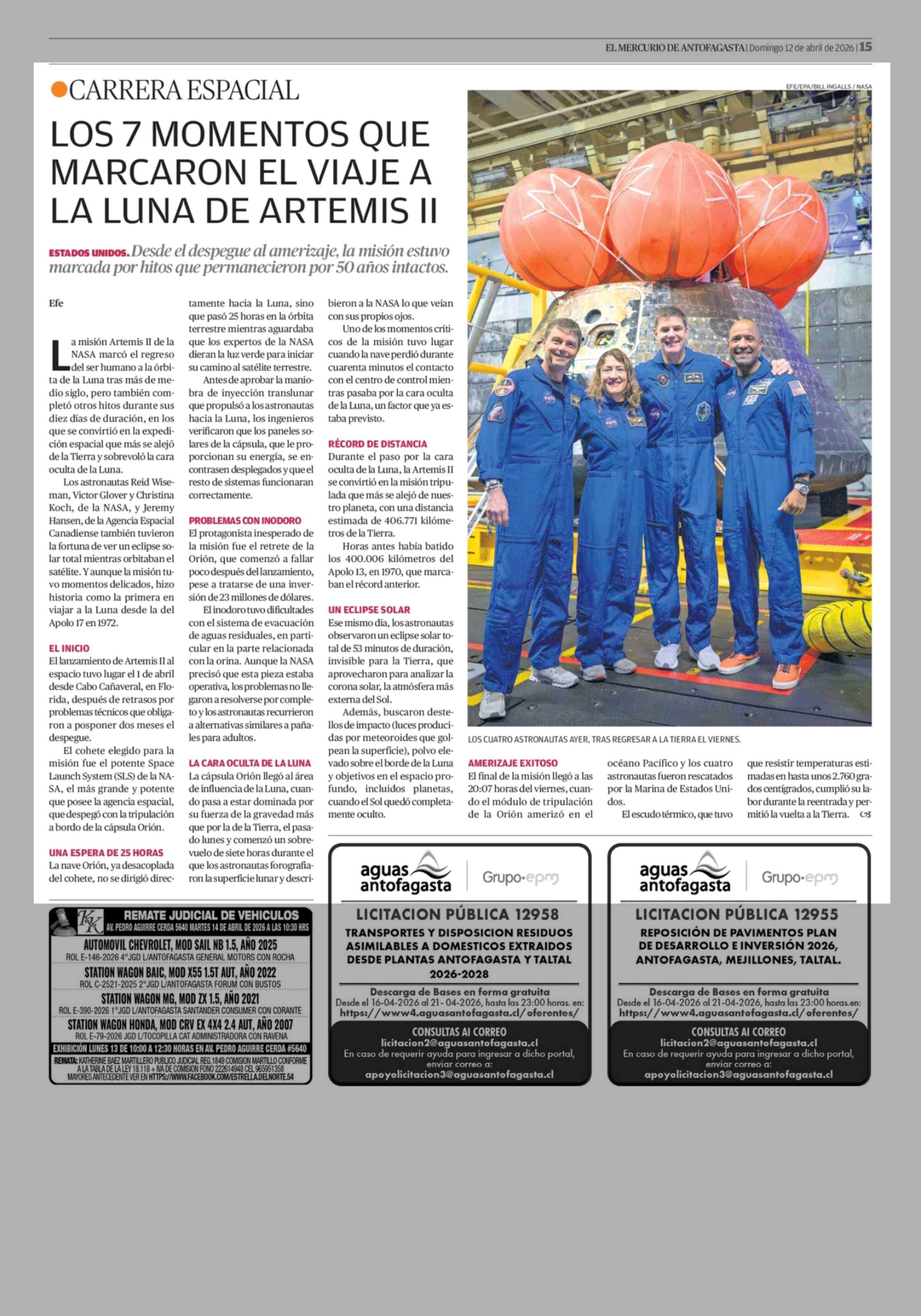 Fuente: El Mercurio de Antofagasta (El Mercurio de Antofagasta) Página(s): 15