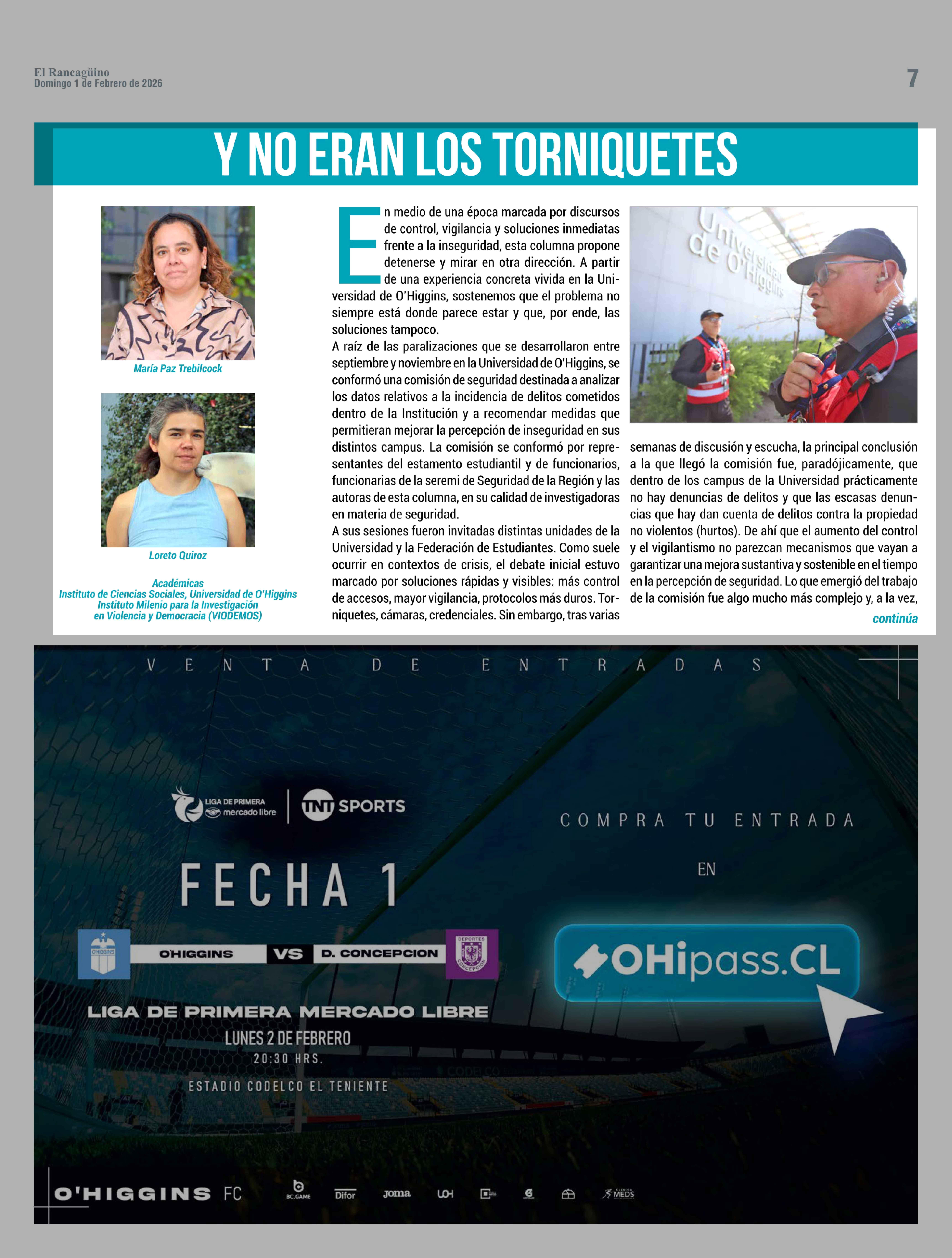 Instituto de Ciencias Sociales, Universidad de O'Higgins Instituto Milenio para la Investigación en Violencia y Democracia (VIODEMOS) 01-02-2026 El Rancagüino |