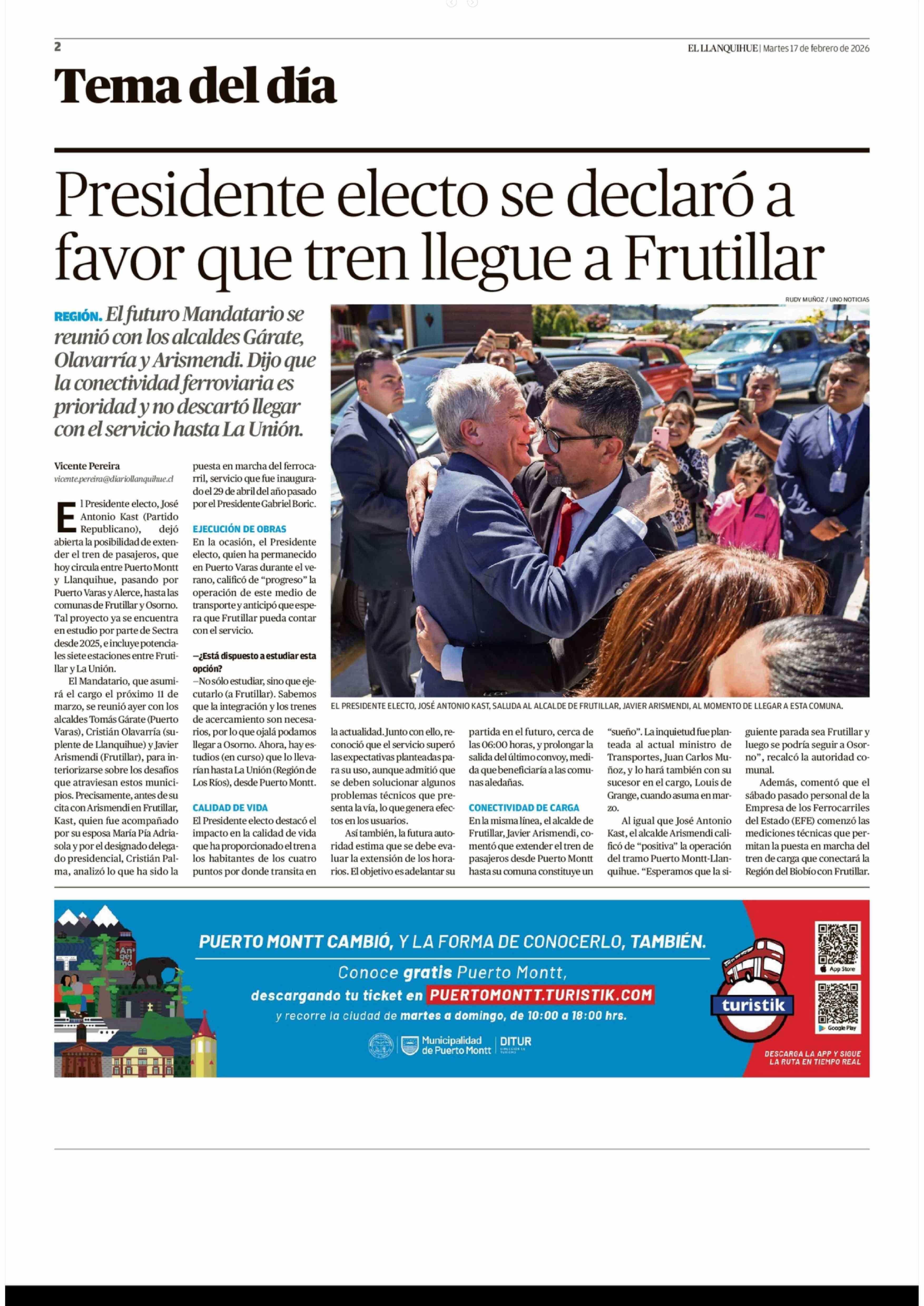 Título: Presidente electo se declaró a favor que tren llegue a Frutillar