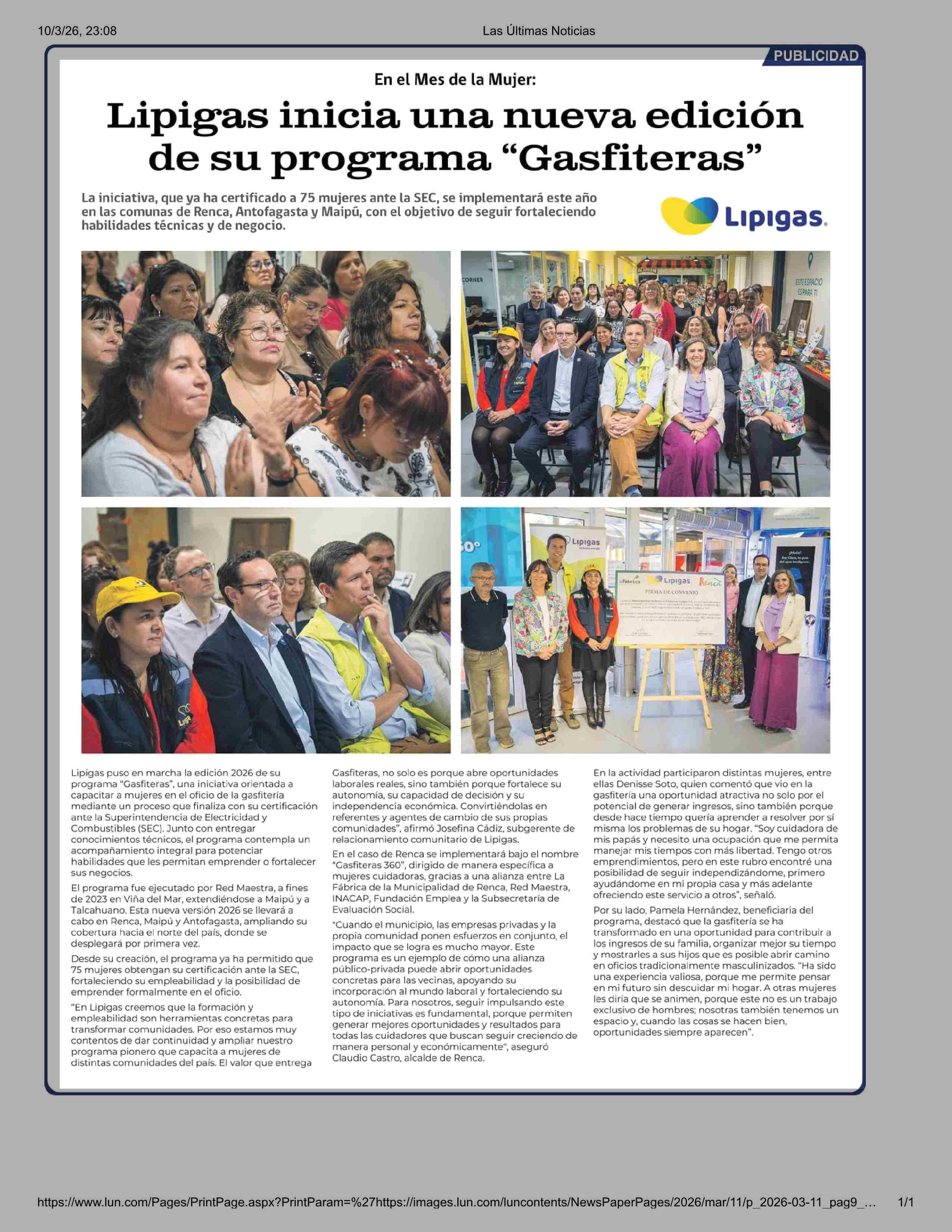Título: Lipigas inicia una nueva edición de su programa “Gasfiteras”