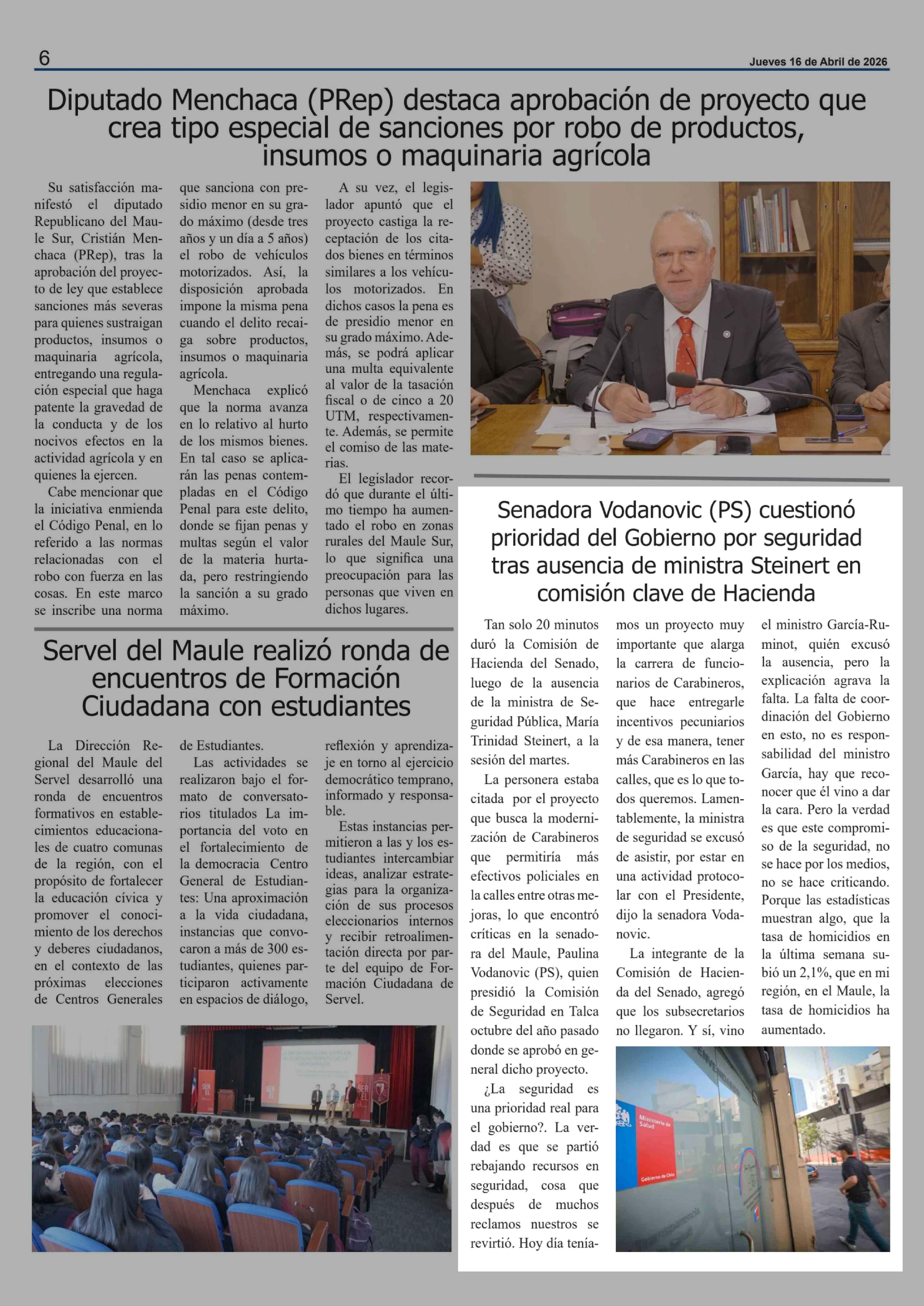 | Fecha: | 16-04-2026 | Sector: | Noticia general | Región: | Región del Maule |