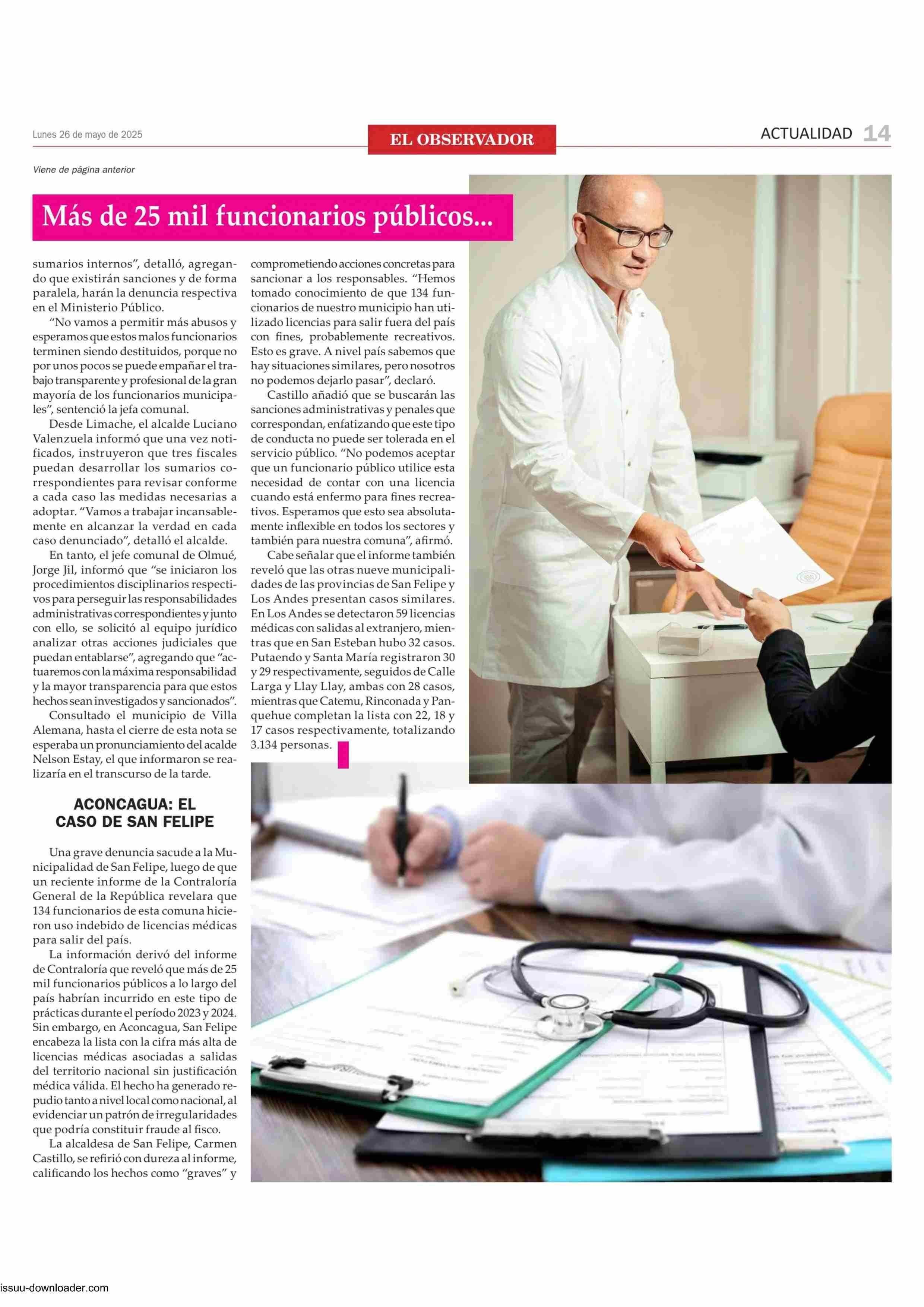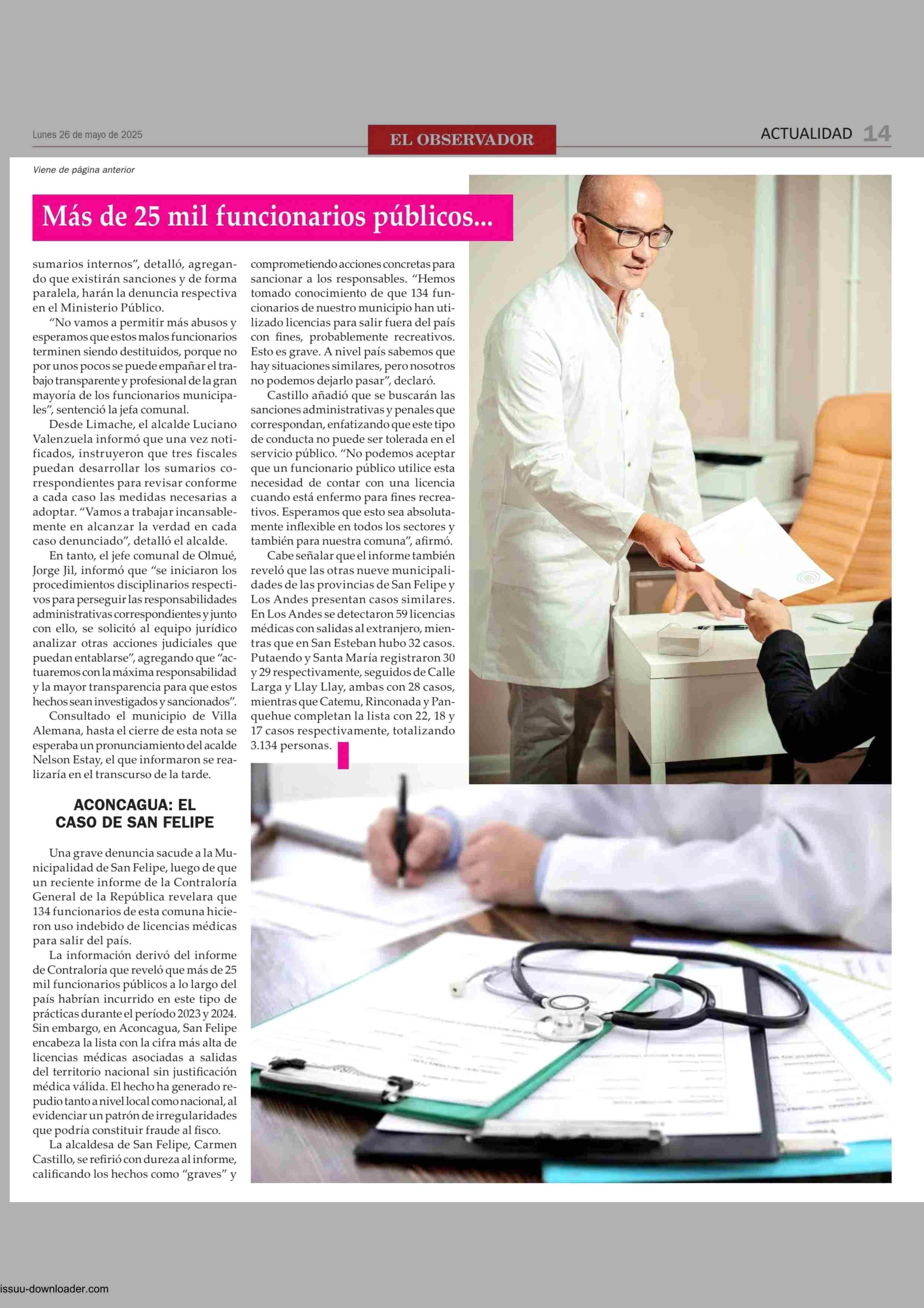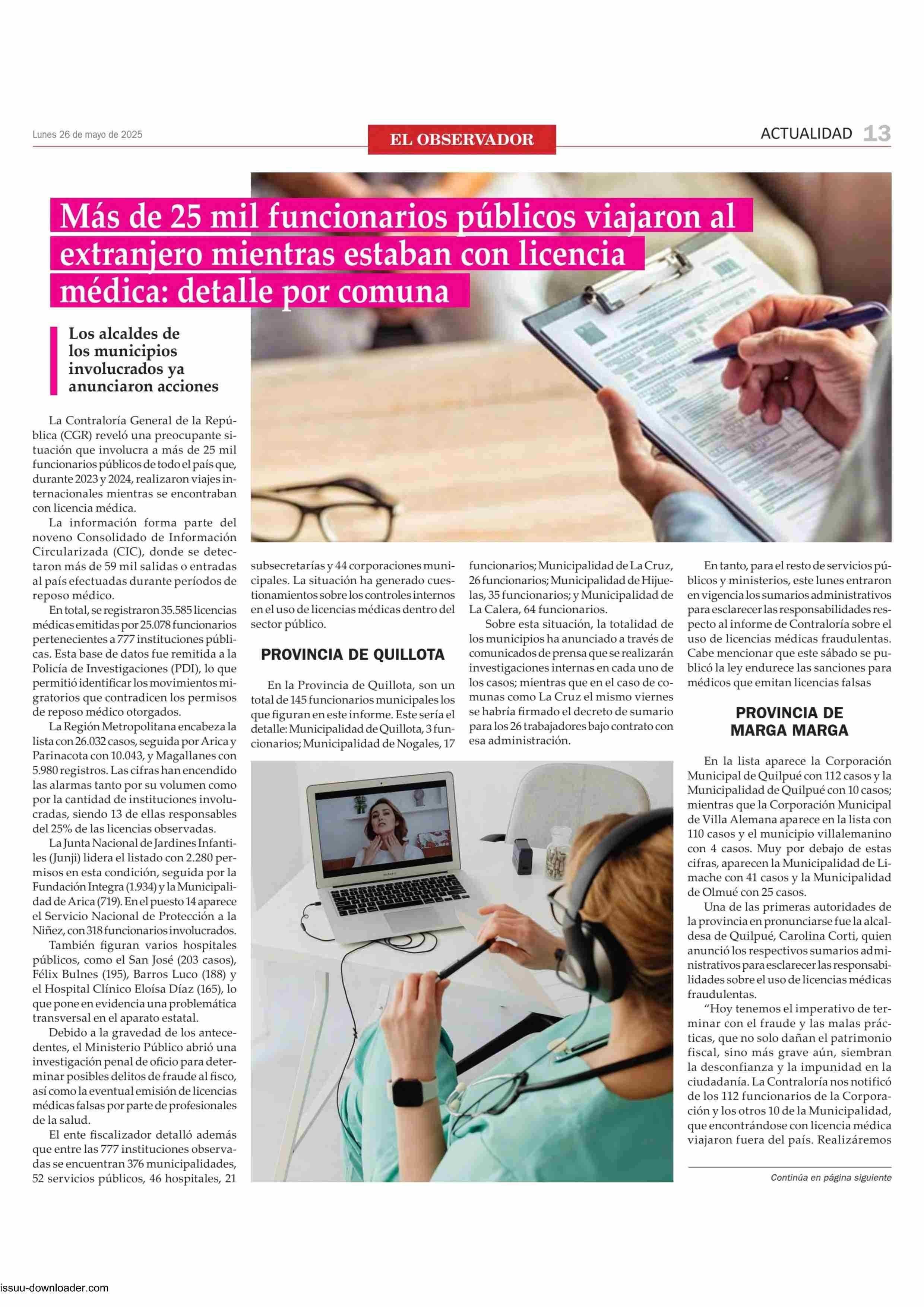 Más de 25 mil funcionarios públicos viajaron al extranjero mientras estaban con licencia médica: detalle por comuna 26-05-2025 El Observador Vespertino |