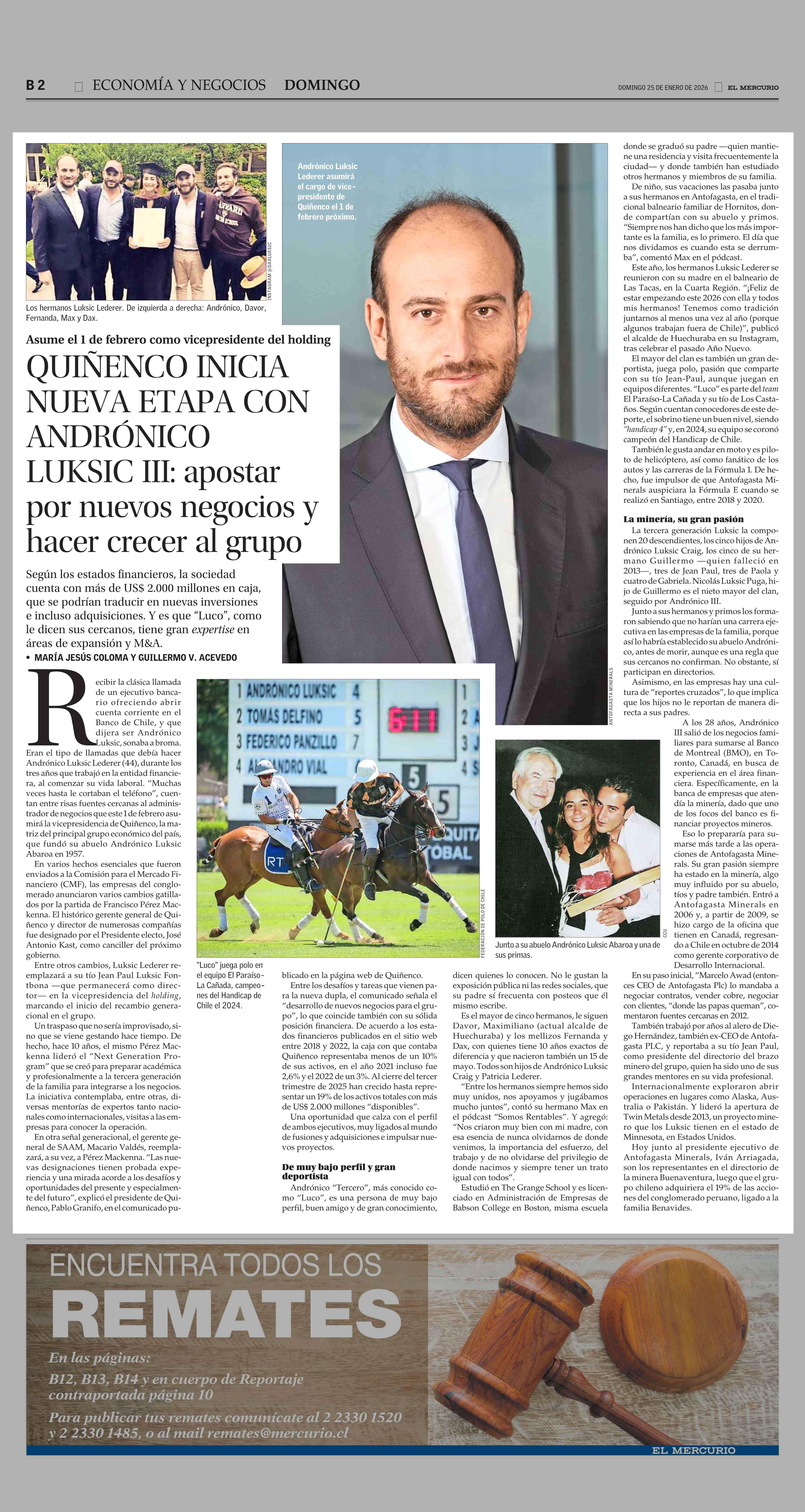 Título: QUIÑENCO INICIA NUEVA ETAPA CON ANDRÓNICO LUKSIC III: apostar por nuevos negocios y hacer crecer al grupo