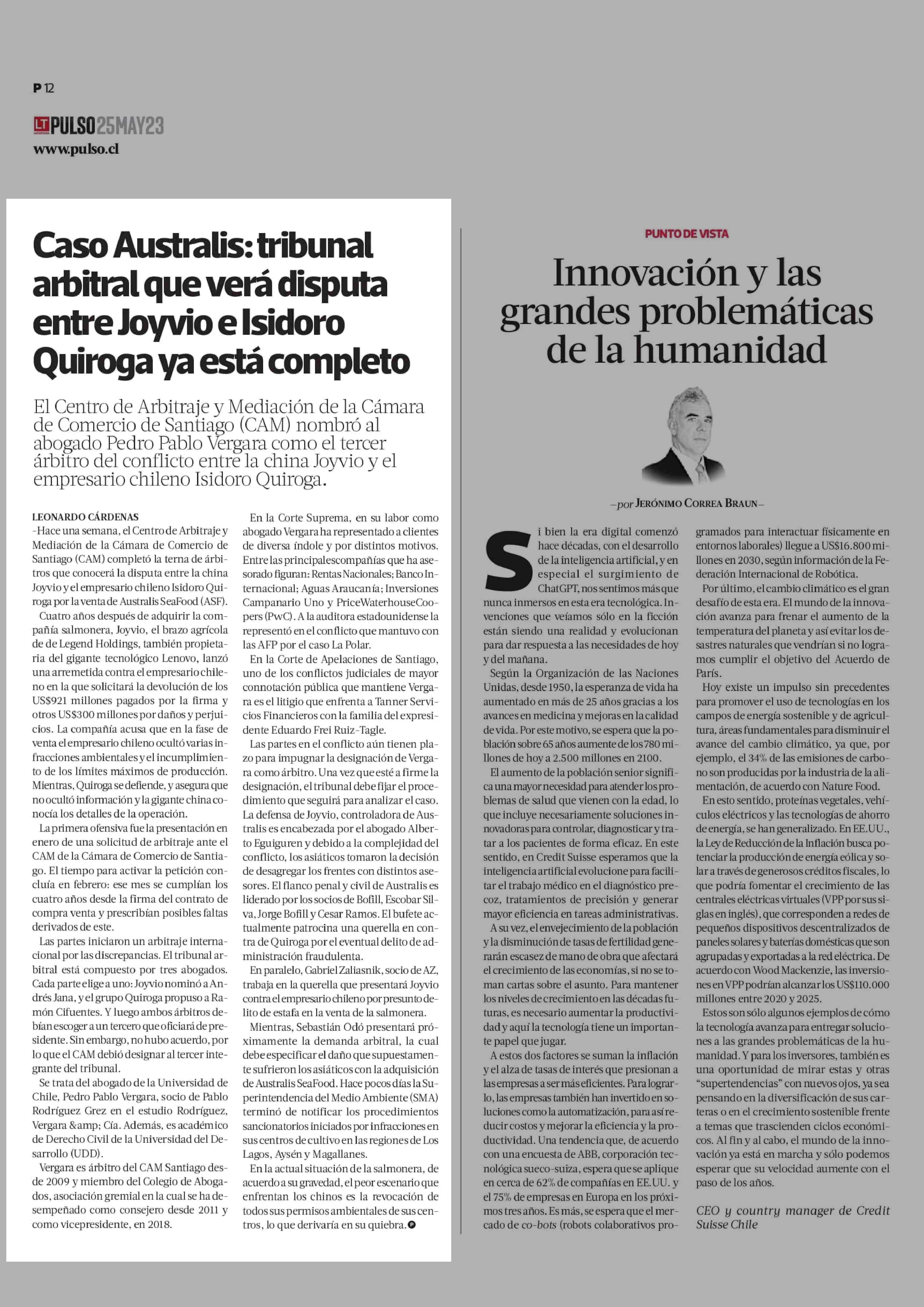 Caso Australis: tribunal arbitral que verá disputa entre Joyvio e Isidoro Quiroga ya está completo 25-05-2023 La Tercera |