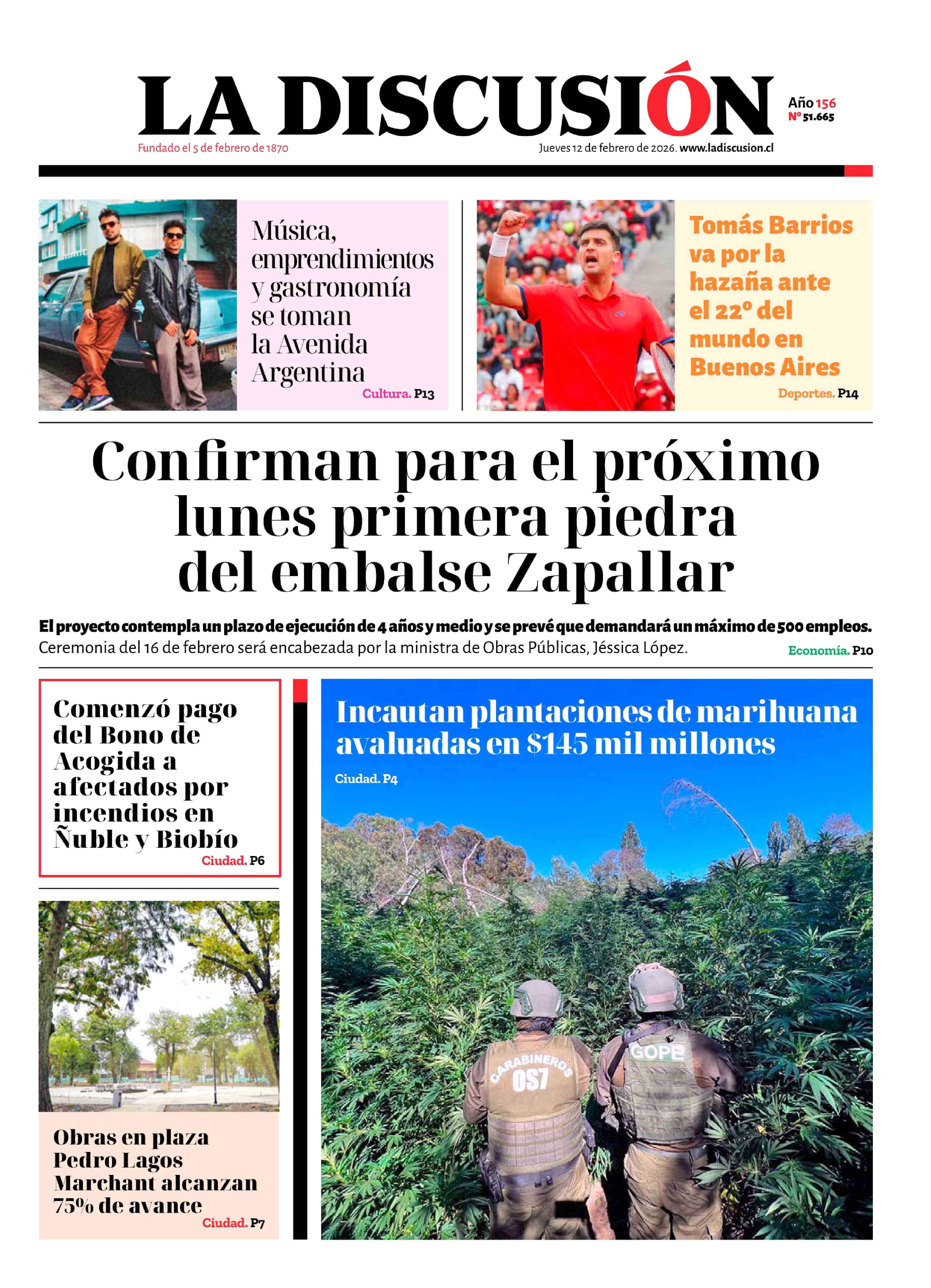 Fecha: 12-02-2026 Sector: Portada Región: Región del Ñuble
