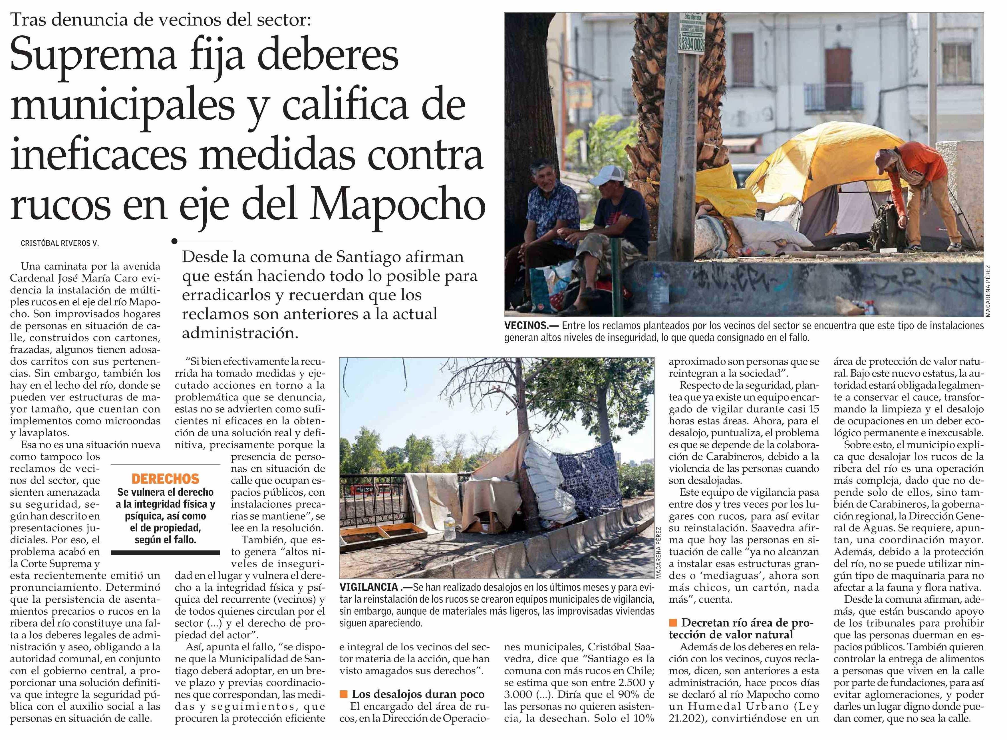 Título: Suprema fija deberes municipales y califica de ineficaces medidas contra rucos en eje del Mapocho