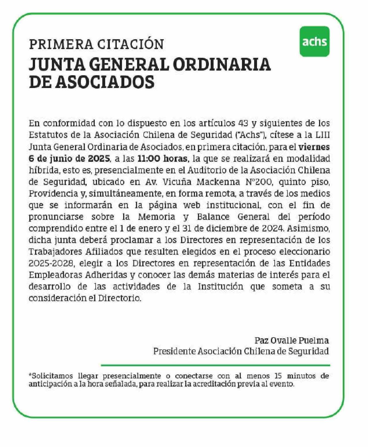 EXTRACTOS: ASOCIACIÓN CHILENA DE SEGURIDAD 26-05-2025 El Divisadero |