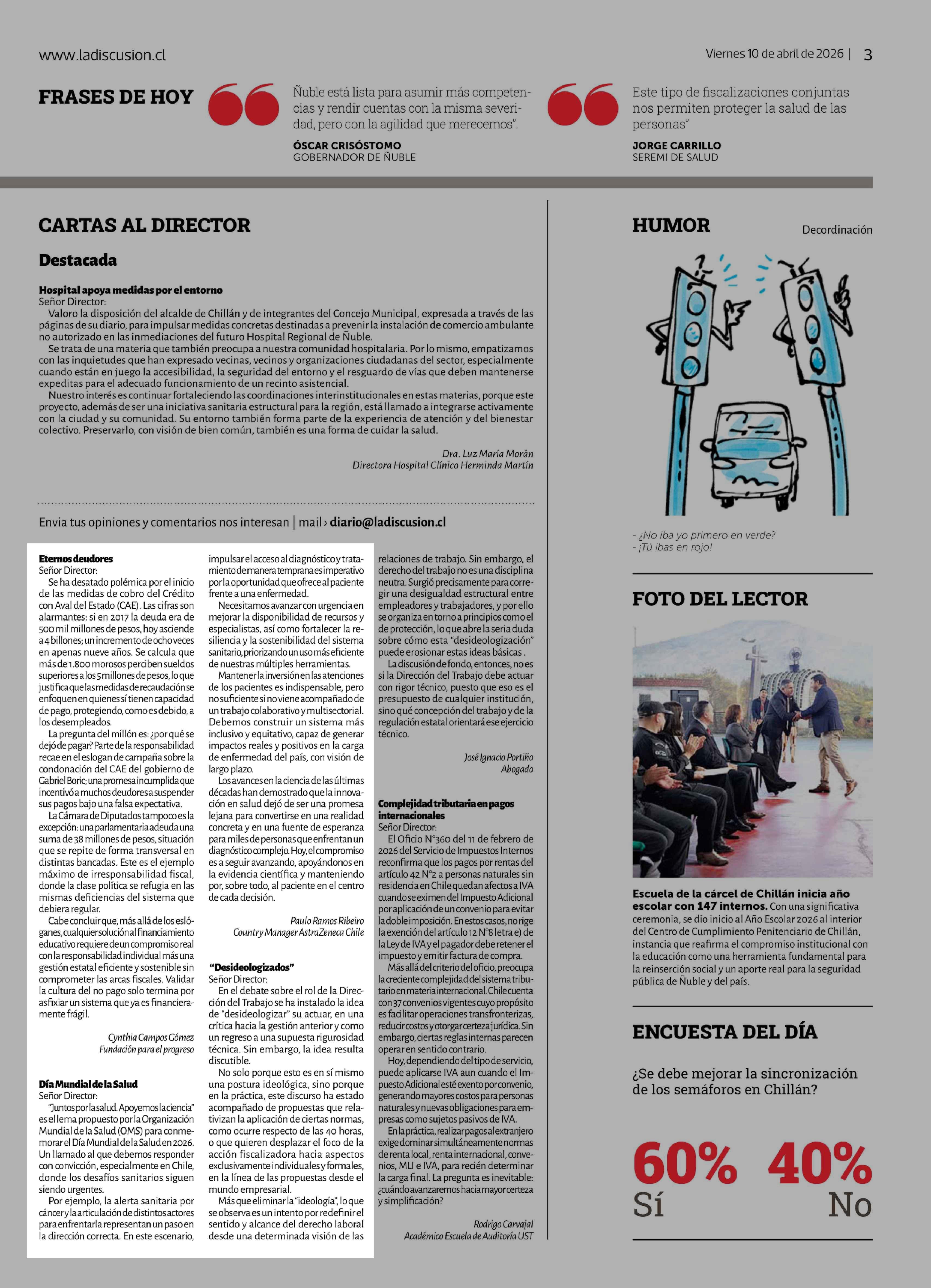 Cartas: Día Mundial de la Salud 10-04-2026 La Discusión |