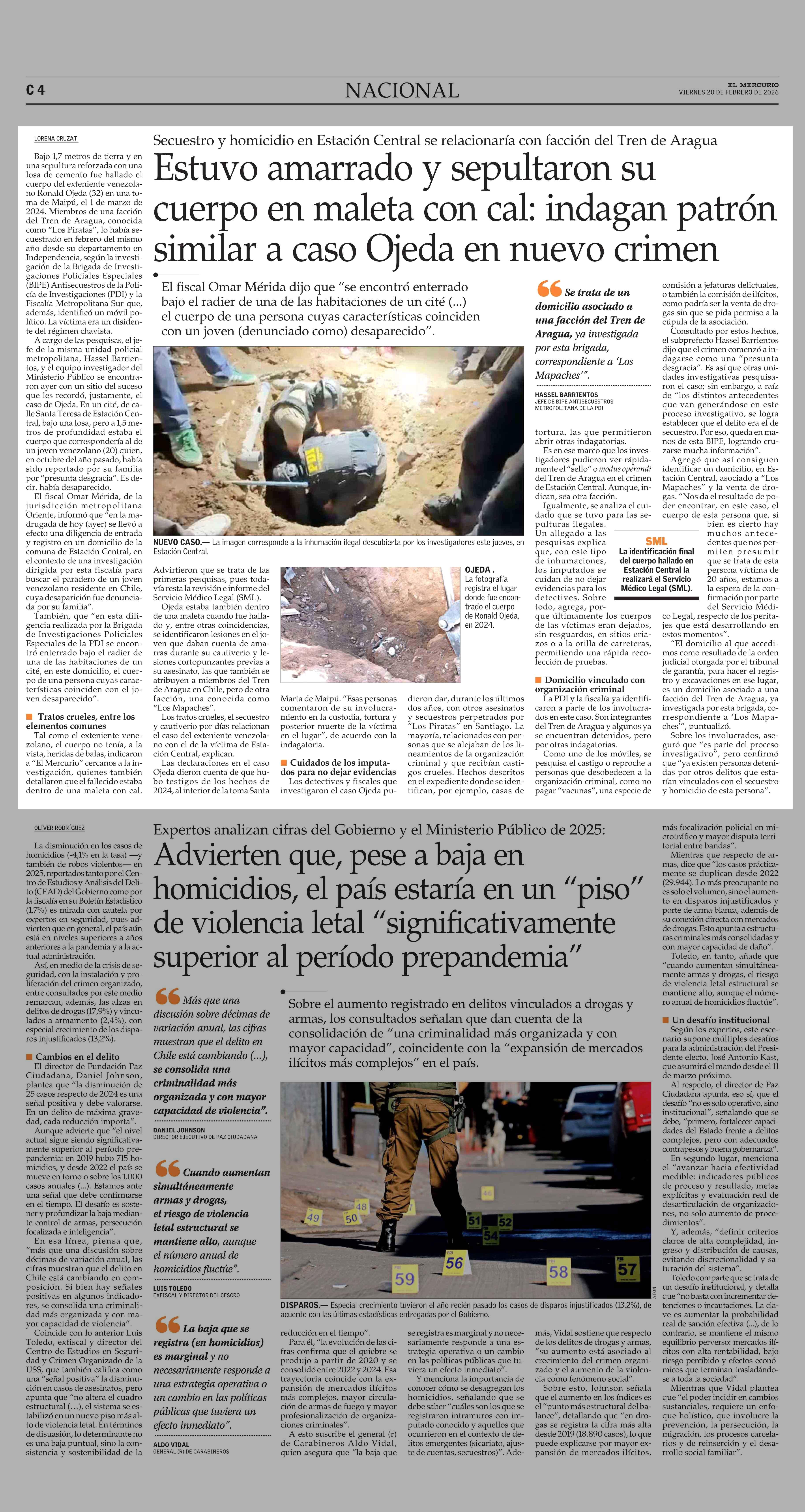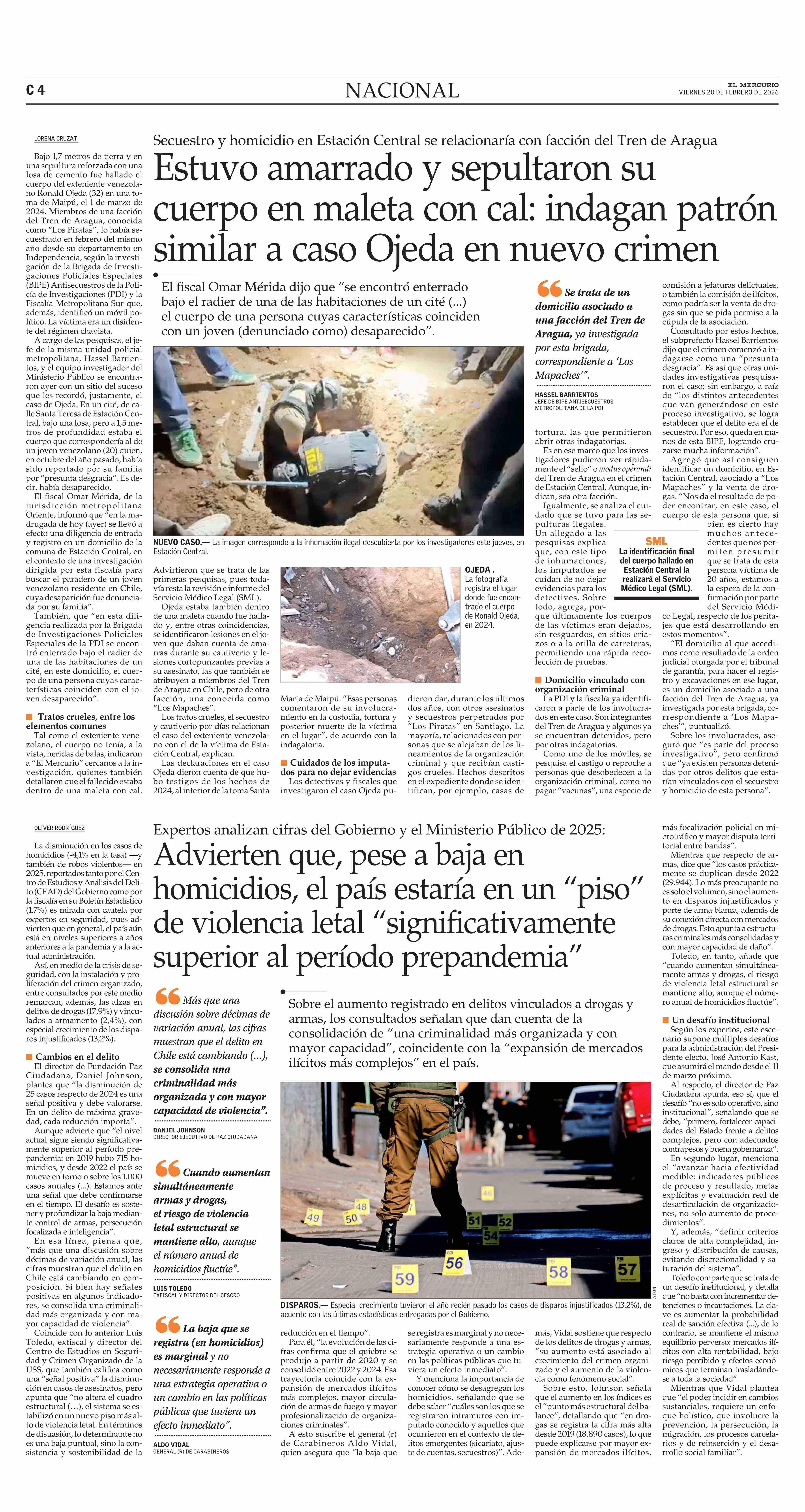 Estuvo amarrado y sepultaron su cuerpo en maleta con cal: indagan patrón similar a caso Ojeda en nuevo crimen 20-02-2026 El Mercurio |