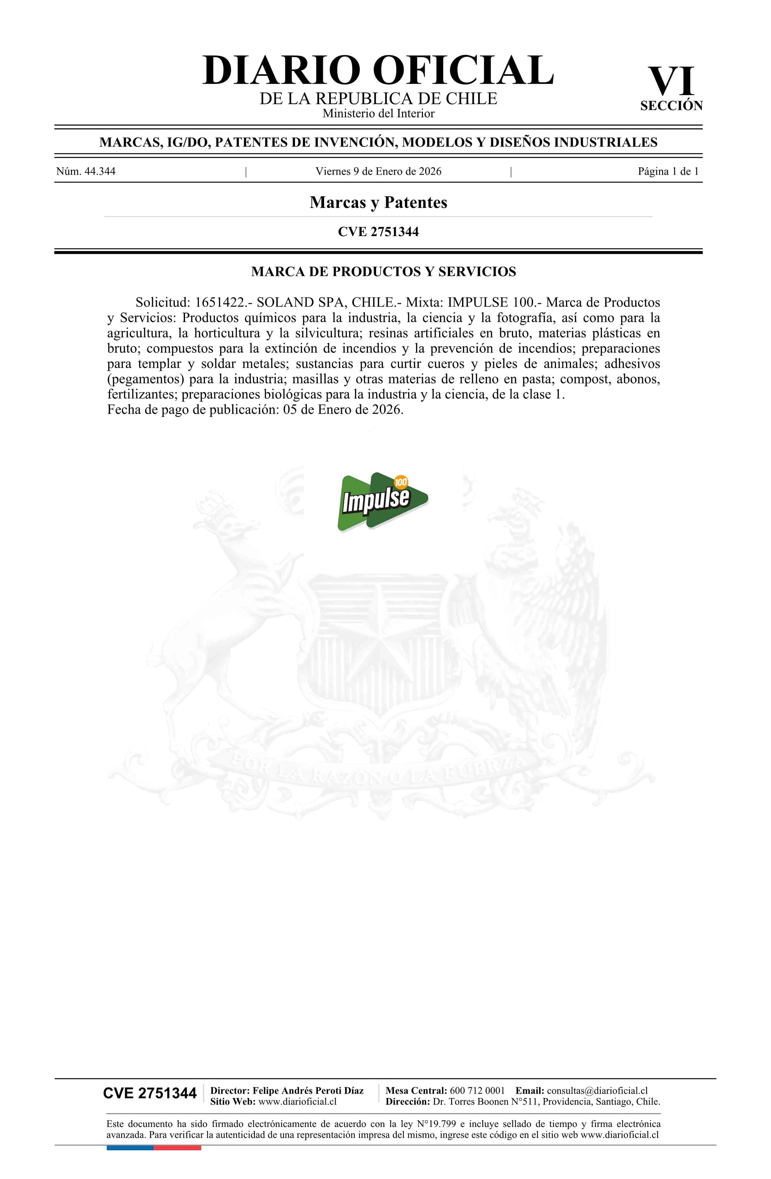 Solicitud número 1651422.- IMPULSE 100