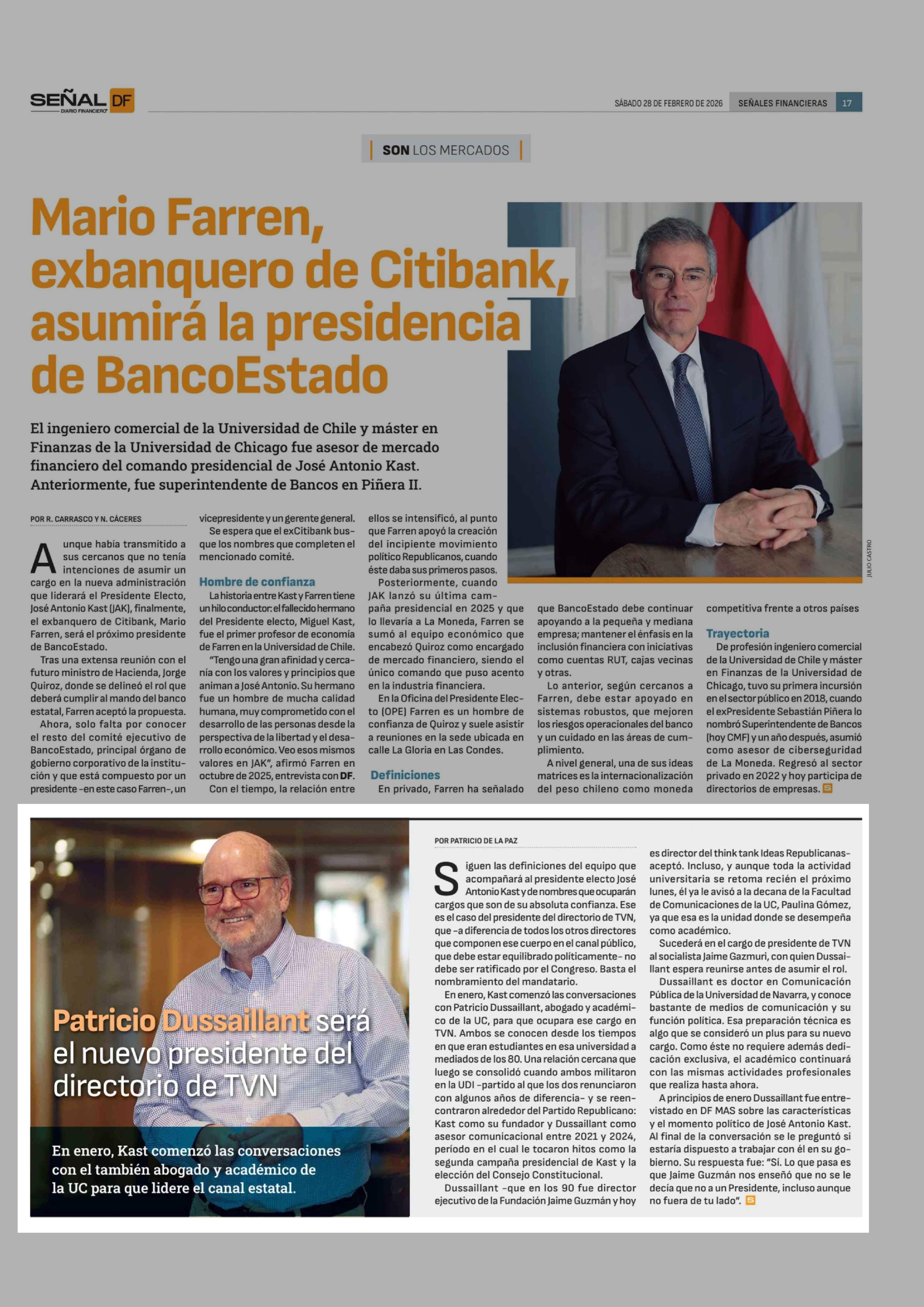 Fuente: Diario Financiero (Diario Financiero - Señal DF Sabado) Página(s): 17