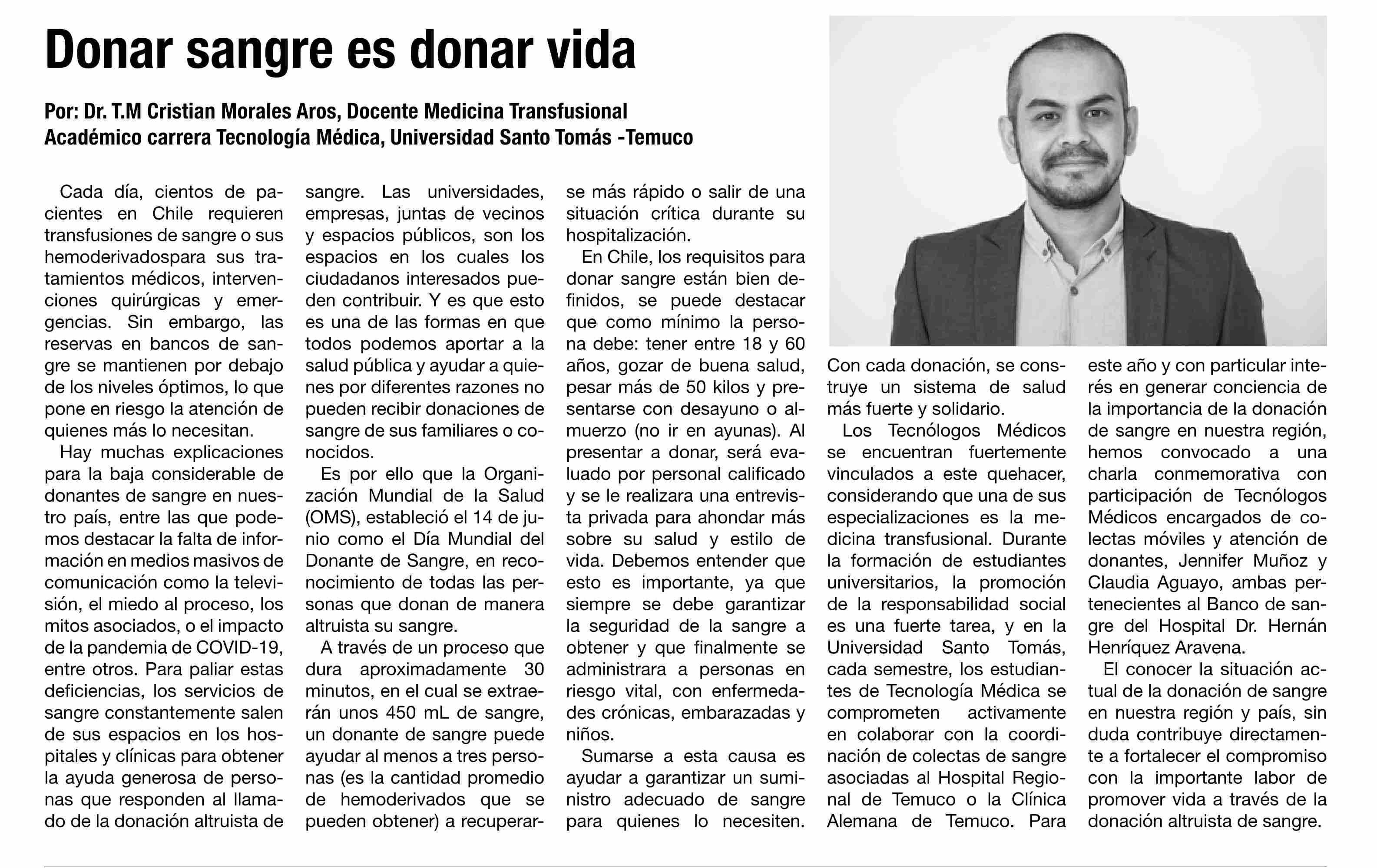 Título: COLUMNAS DE OPINIÓN: Donar sangre es donar vida