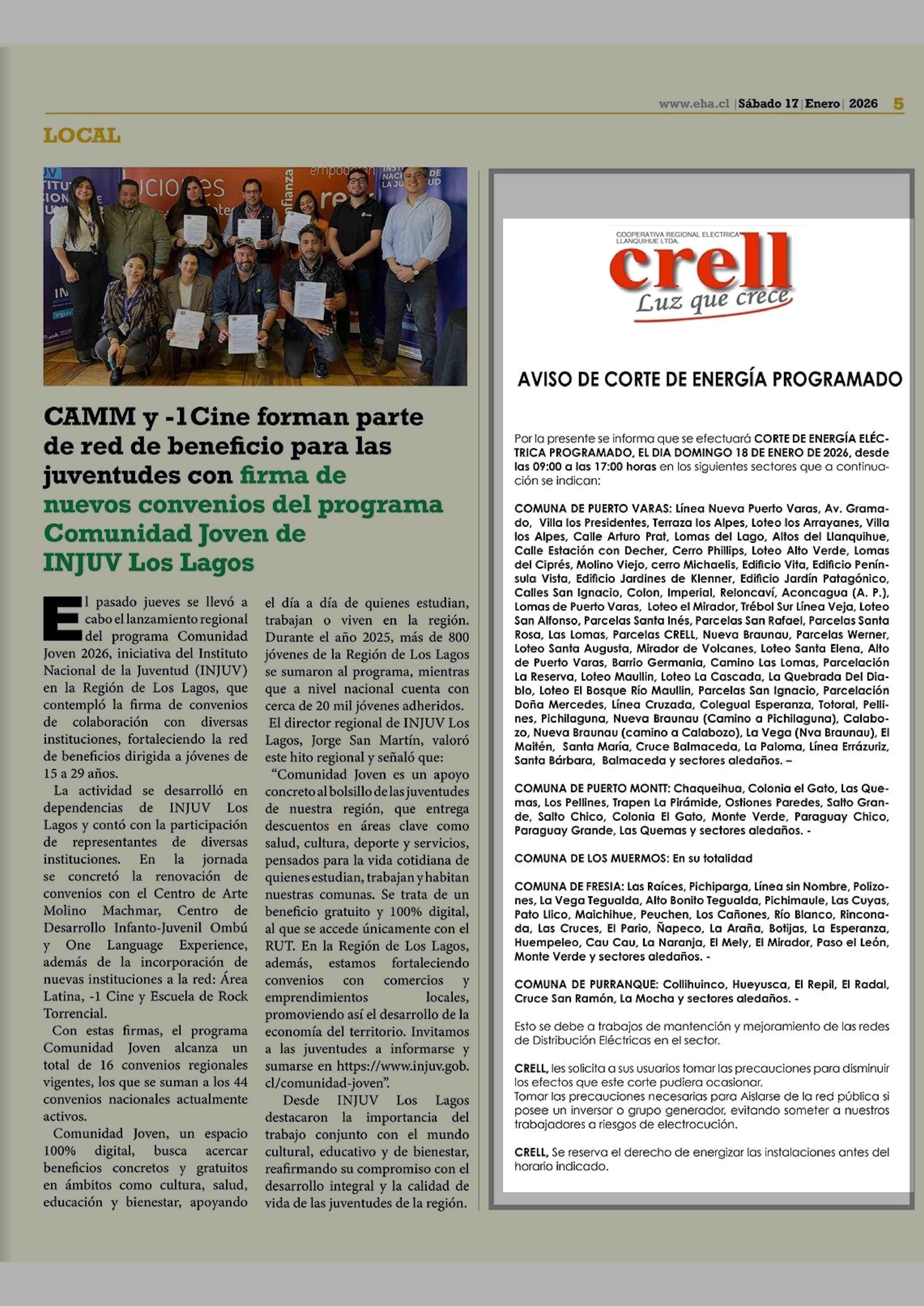 | Fecha: | 17-01-2026 | Sector: | Noticia general | Región: | Región de Los Lagos |