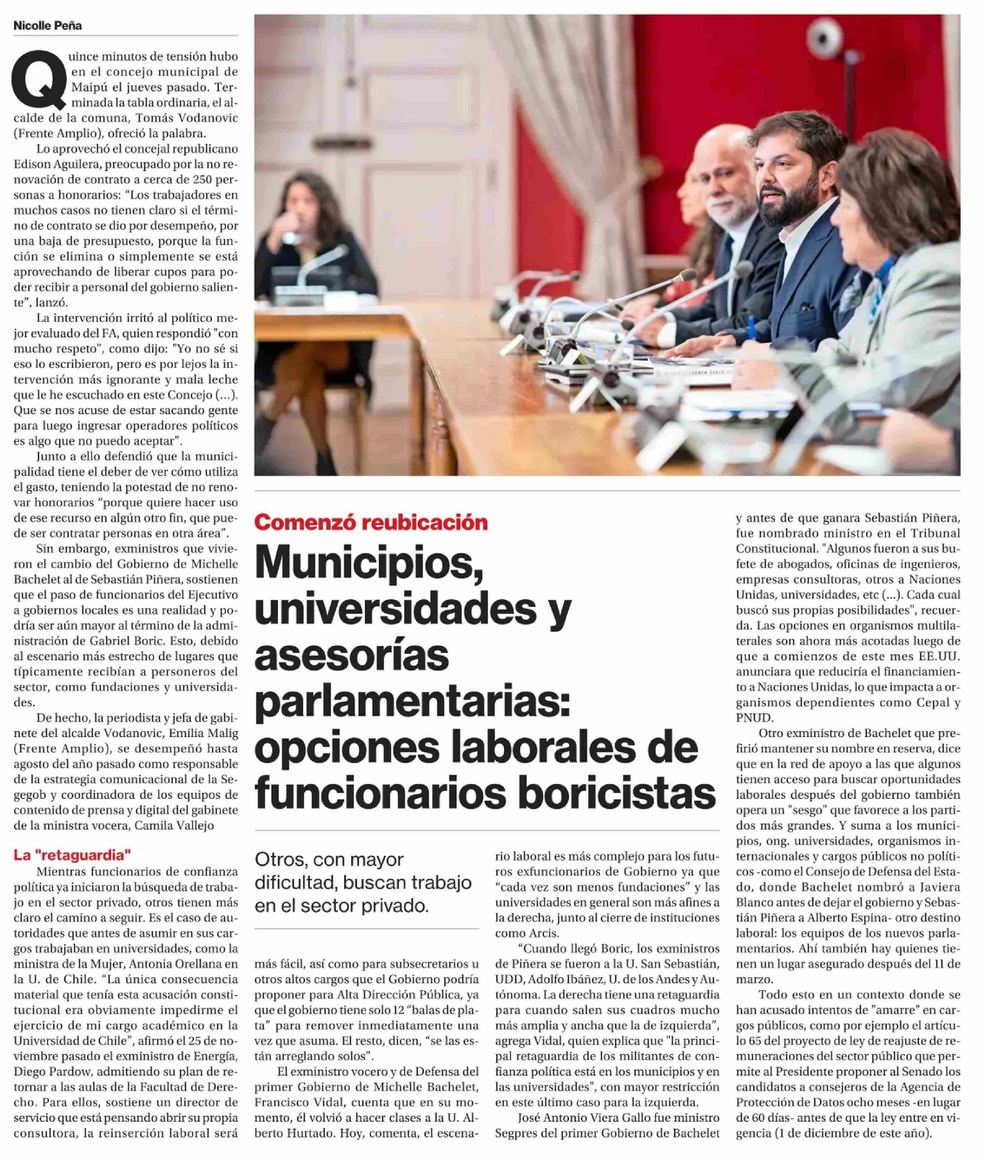 Municipios, universidades y asesorías parlamentarias: opciones laborales de funcionarios boricistas 13-01-2026 La Segunda |