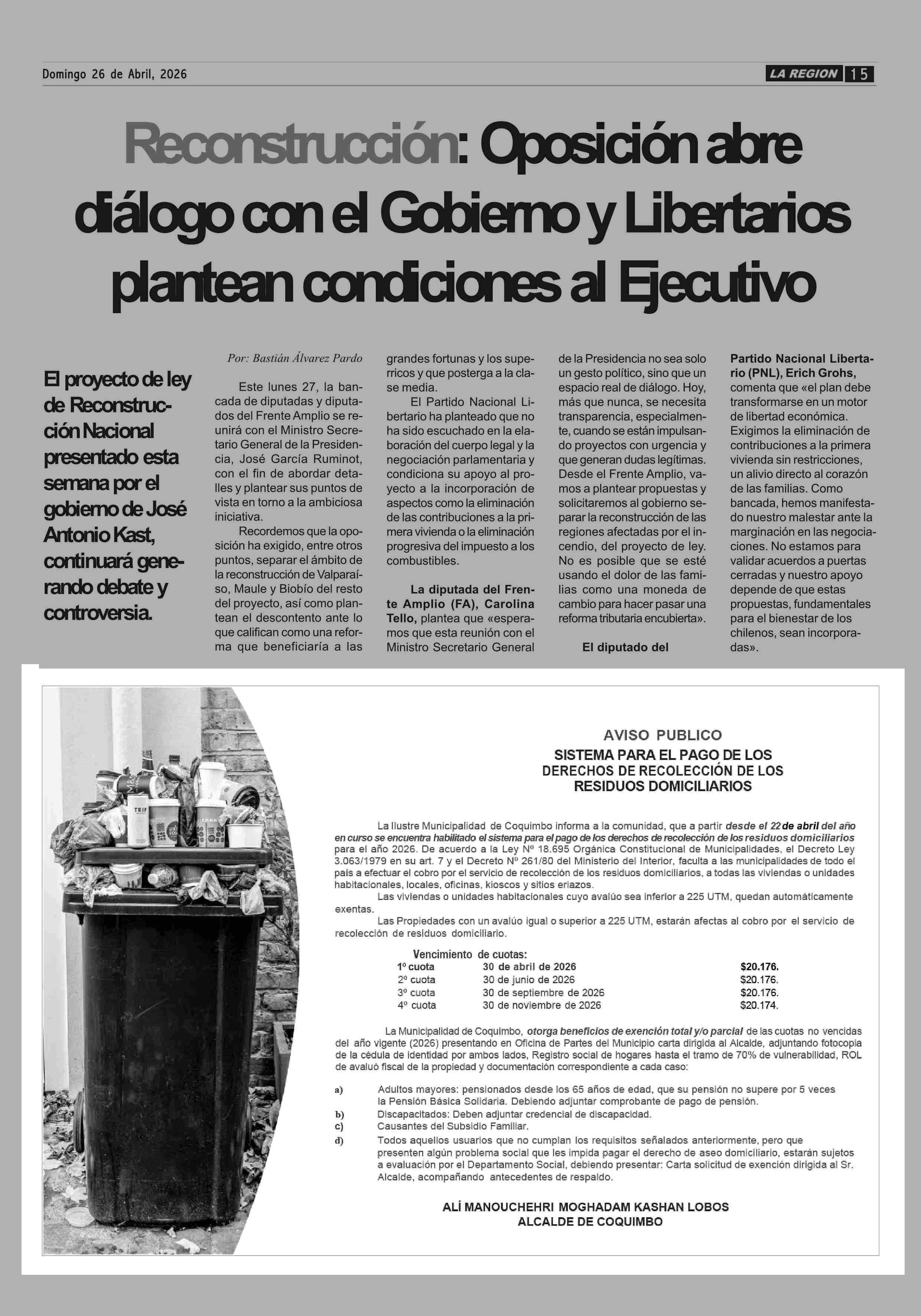 | Fecha: | 26-04-2026 | Sector: | Aviso Publicitario | Región: | Región de Coquimbo |