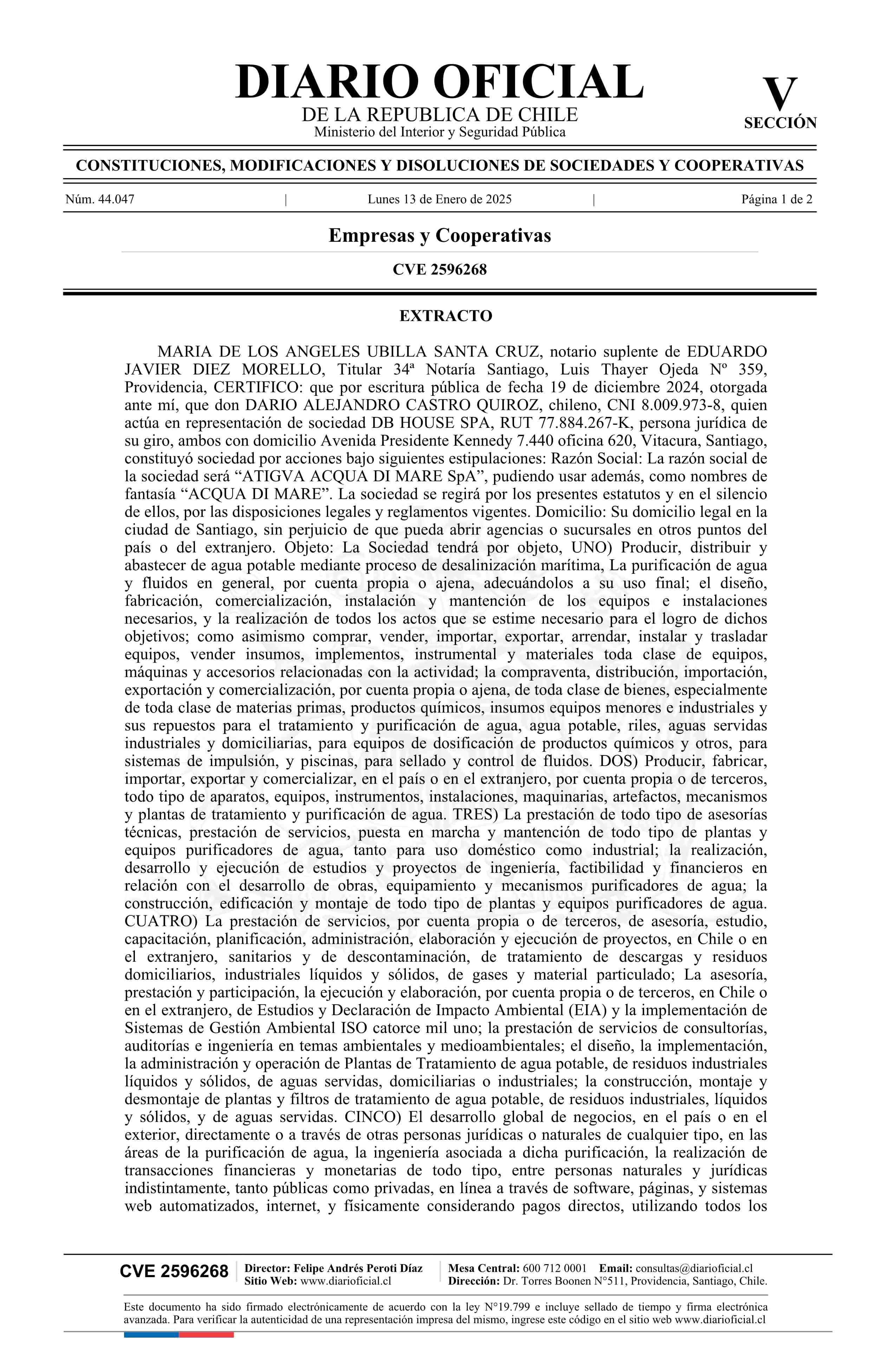 ATIGVA ACQUA DI MARE SpA 13-01-2025 Diario Oficial Edición Electrónica |