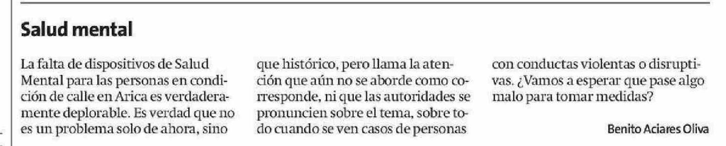 Cartas: Salud mental 15-06-2025 La Estrella de Arica |