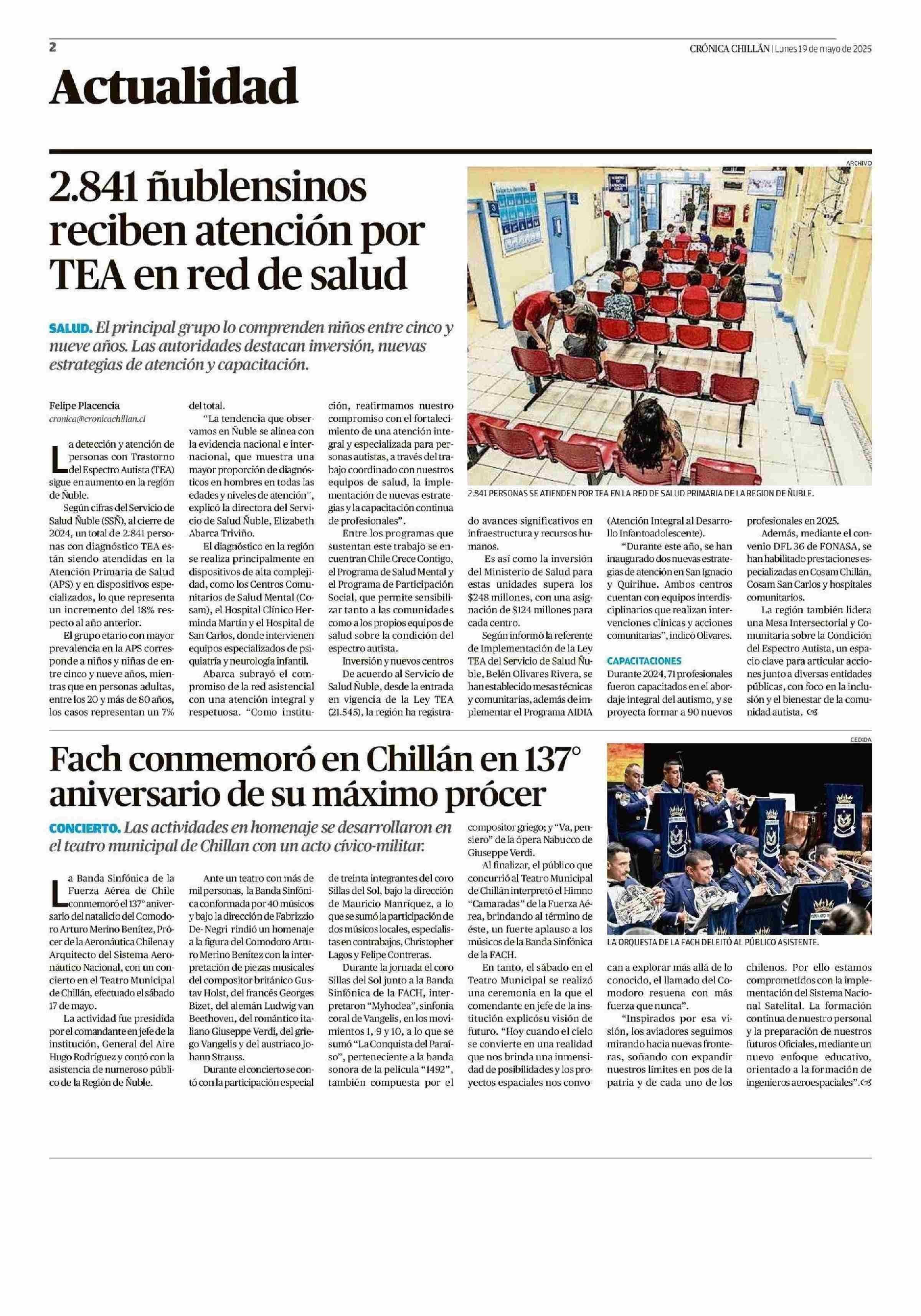 | Fecha: | 19-05-2025 | Sector: | Noticia general | Región: | Región del Ñuble |