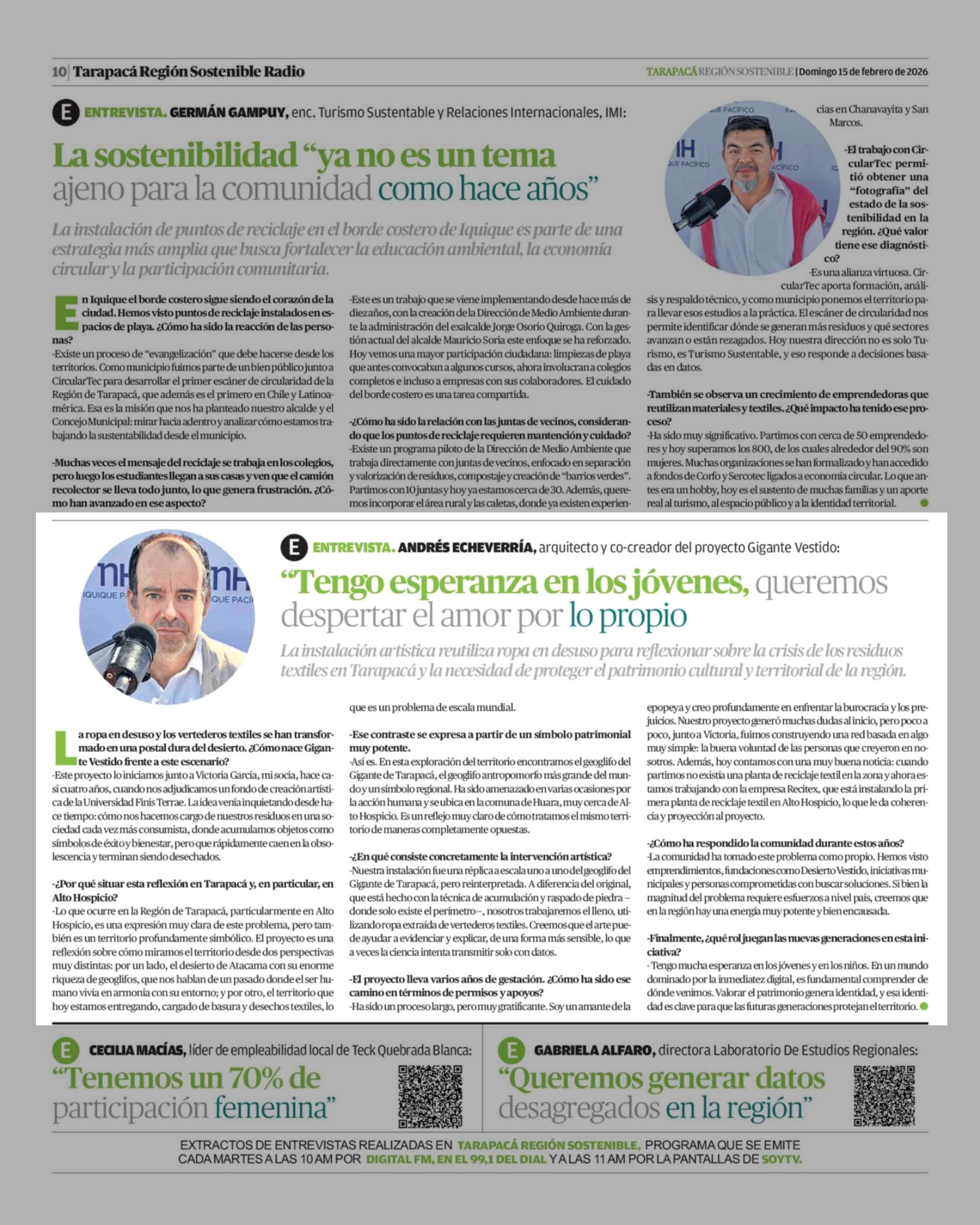 Columnas de Opinión: "Tengo esperanza en los jóvenes, queremos despertar el amor por lo propio 15-02-2026 La Estrella de Iquique |