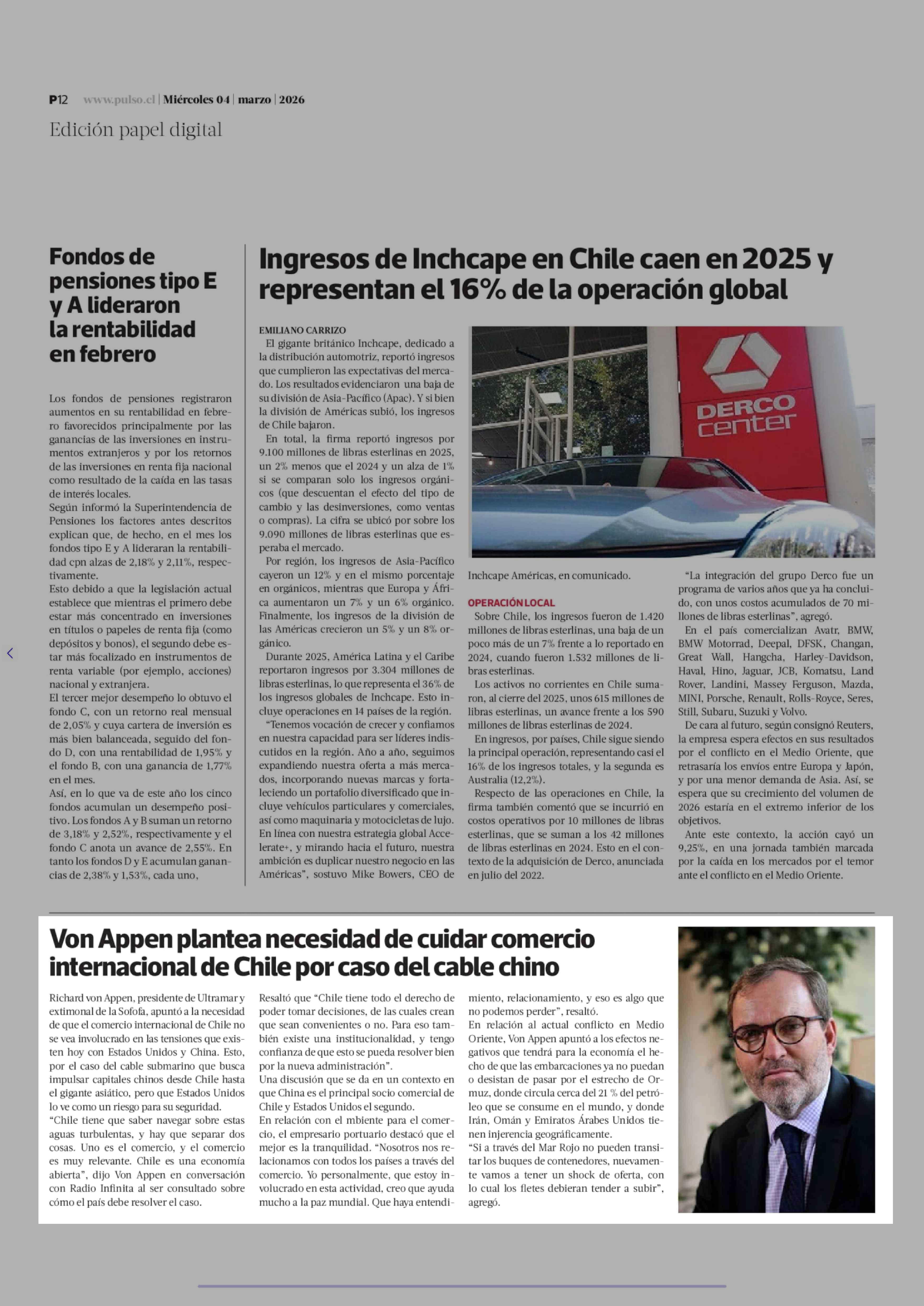 Von Appen plantea necesidad de cuidar comercio internacional de Chile por caso del cable chino 04-03-2026 La Tercera |
