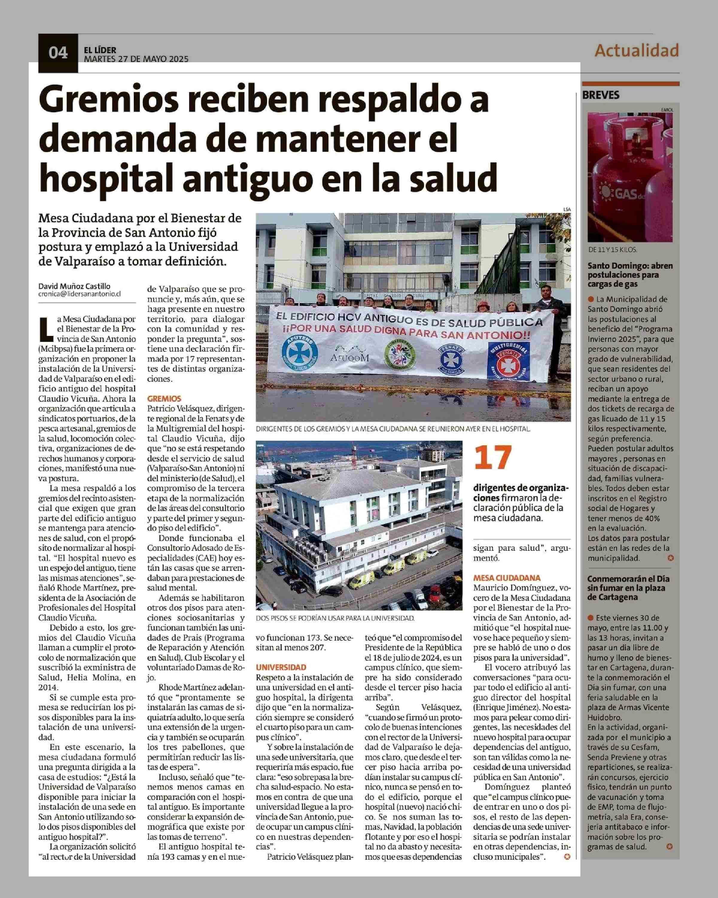 Gremios reciben respaldo a demanda de mantener el hospital antiguo en la salud 27-05-2025 El Líder |