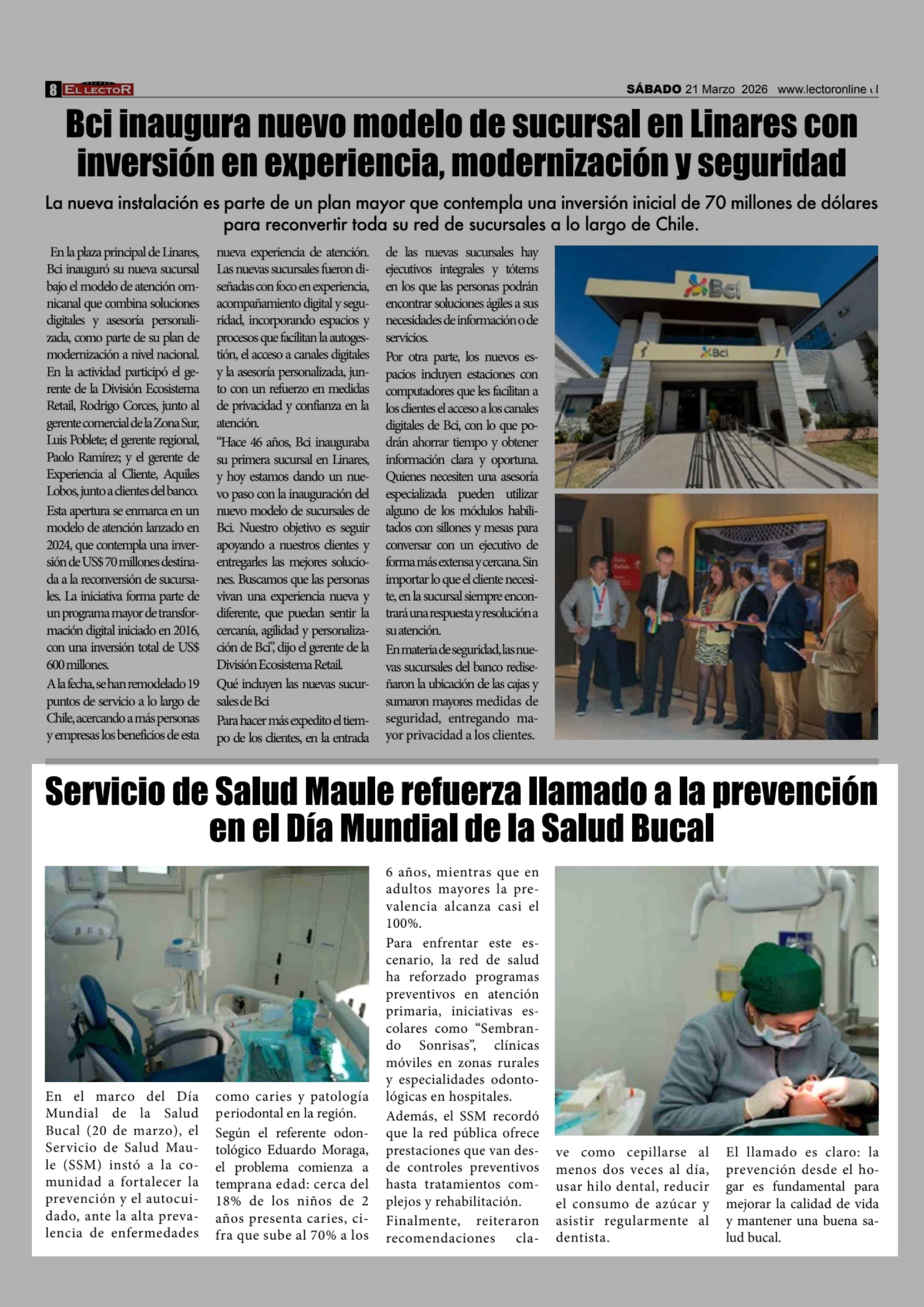 Servicio de Salud Maule refuerza llamado a la prevención en el Día Mundial de la Salud Bucal 21-03-2026 El Lector |