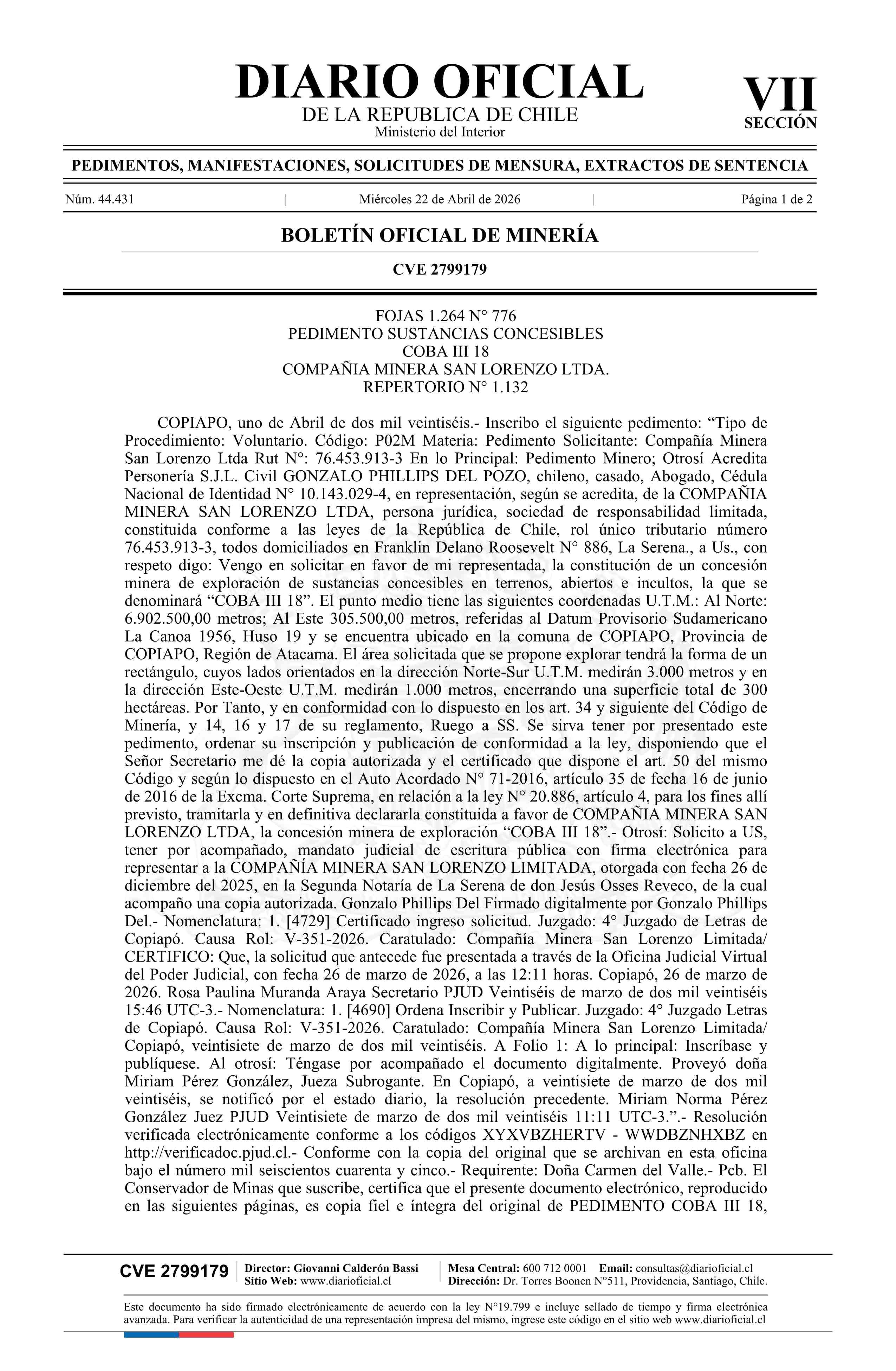 22-04-2026 DIARIO OFICIAL CHILE - BOLETÍN OFICIAL DE MINERÍA